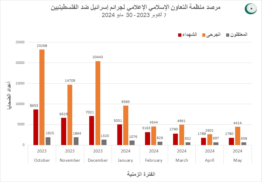 الثلاثاء 27 ذو القعدة 1445هـ 4-6-2024مالتقرير الأسبوعي لمرصد منظمة التعاون الإسلامي الإعلامي لجرائم إسرائيل ضد الفلسطينيين