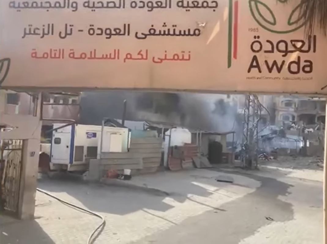 اشتعال النيران في مستشفى العودة شمال قطاع غزة جراء استهدافه من الاحتلال