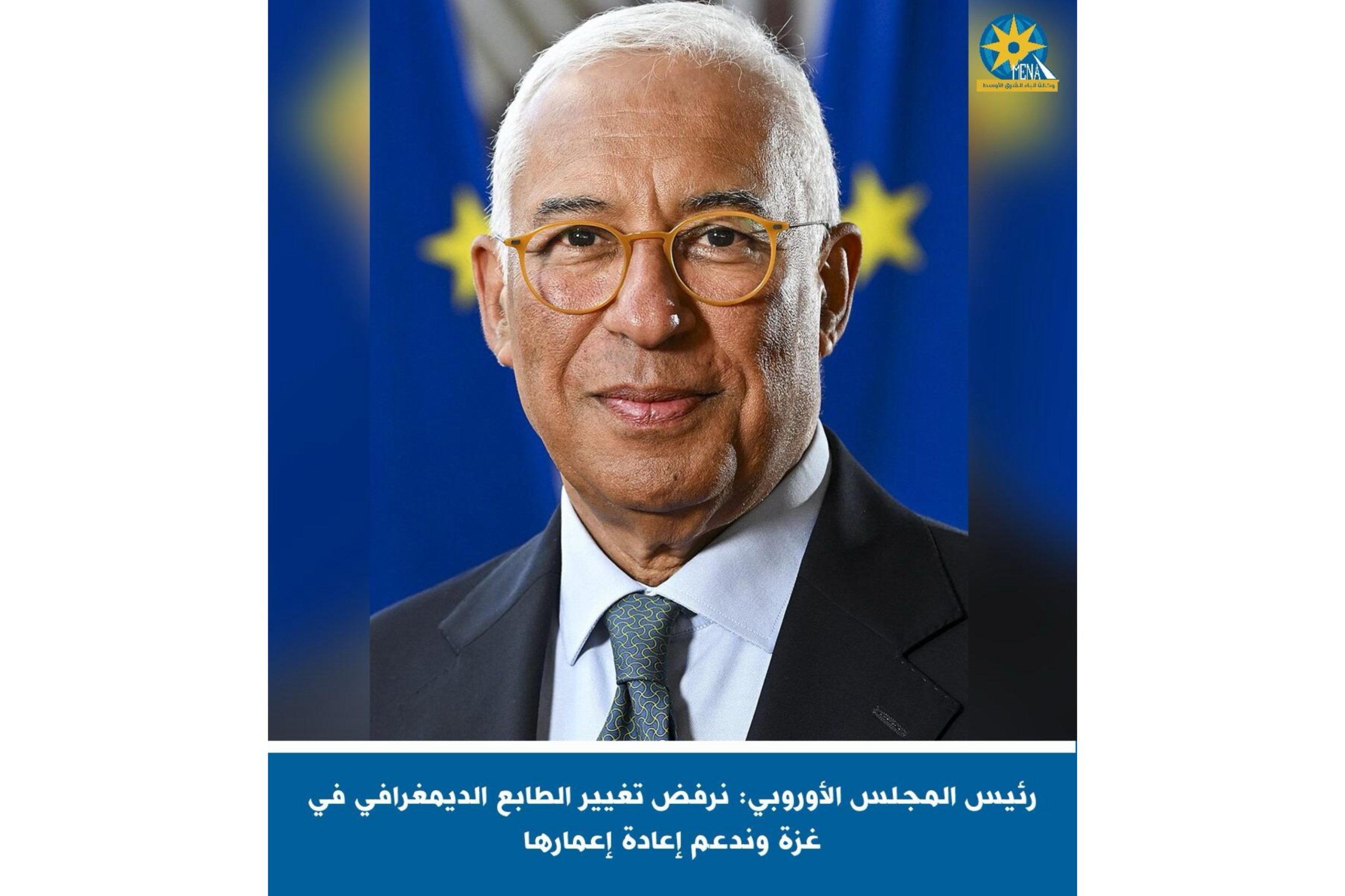 رئيس المجلس الأوروبي: نرفض تغيير الطابع الديمغرافي في غزة وندعم إعادة إعمارها