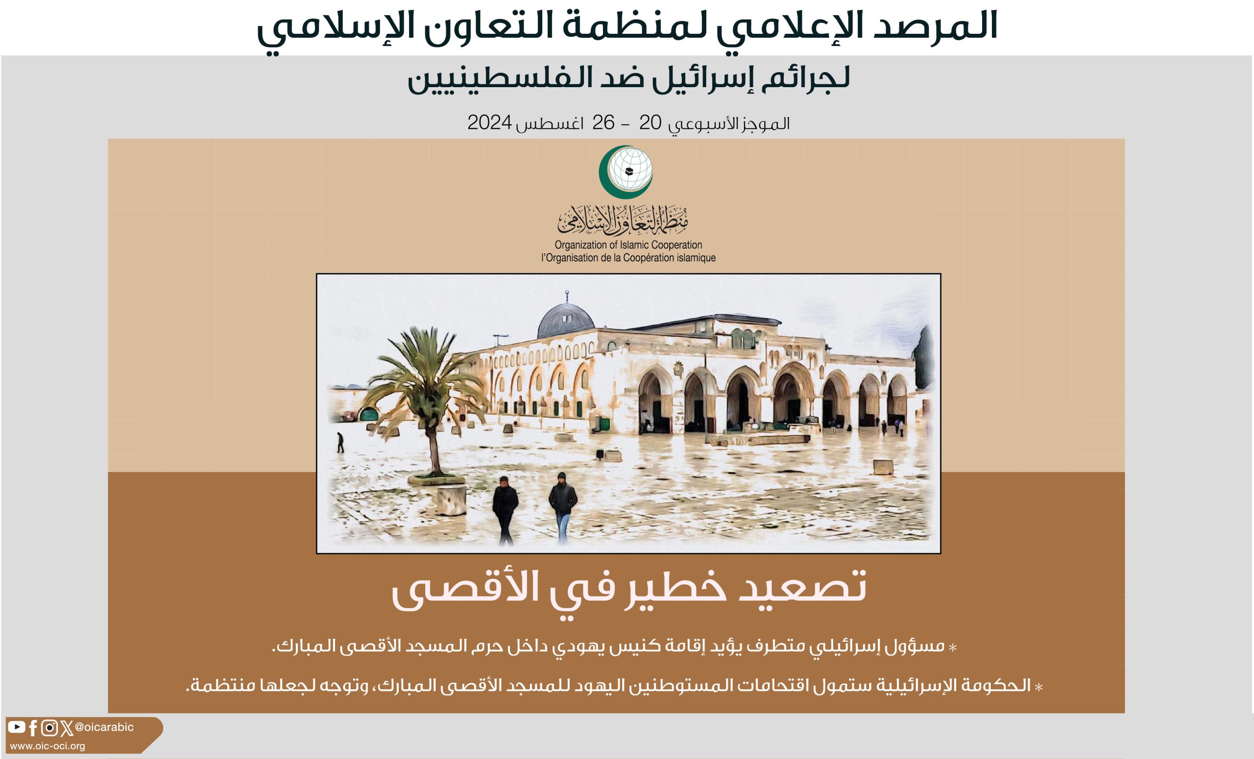 التقرير الأسبوعي للمرصد الإعلامي لمنظمة التعاون الإسلامي لجرائم إسرائيل ضد الفلسطينيين