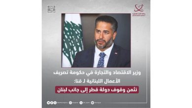 وزير الاقتصاد والتجارة في حكومة تصريف الأعمال اللبنانية: نثمن وقوف دولة قطر إلى جانب لبنان