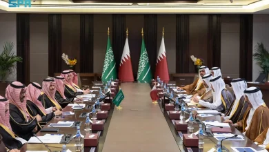 الدوحة (يونا) – تقدم الشيخ تميم بن حمد آل ثاني أمير قطر، مستقبلي الرئيس عبدالفتاح السيسي رئيس جمهورية مصر العربية الشقيقة، لدى وصوله والوفد المرافق الصالة الأميرية بمطار حمد الدولي، مساء اليوم، في زيارة رسمية للبلاد تستغرق يومين. كما كان في استقبال الرئيس المصري والوفد المرافق، الشيخ محمد بن عبدالرحمن آل ثاني نائب رئيس مجلس الوزراء وزير الخارجية، والشيخ سعود بن عبدالرحمن آل ثاني رئيس الديوان الأميري، والشيخ محمد بن حمد بن قاسم آل ثاني وزير التجارة والصناعة، وسالم بن مبارك آل شافي سفير قطر لدى جمهورية مصر العربية، وعمرو الشربيني السفير المصري لدى قطر.