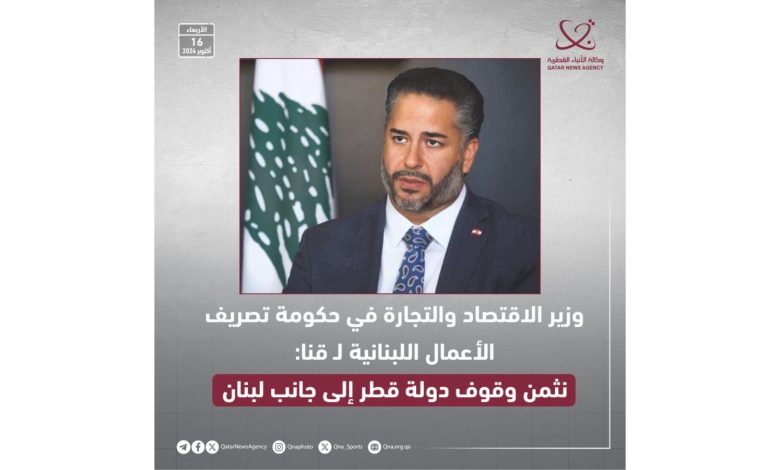 وزير الاقتصاد والتجارة في حكومة تصريف الأعمال اللبنانية: نثمن وقوف دولة قطر إلى جانب لبنان