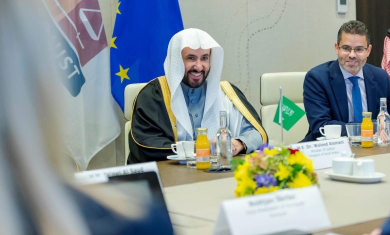 وكان في استقبال وزير العدل خلال الزيارة، رئيس “اليوروجست” مايكل شميد، وبحث الجانبان خلاله سبل تعزيز التعاون، في المجالين العدلي والقضائي؛ بما يعزز العدالة وحقوق الإنسان.