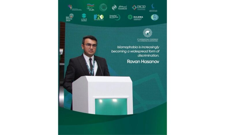 وألقى حسنوف كلمة في الجلسة الافتتاحية للمؤتمر الدولي الذي انطلق في باكو اليوم 26 مايو 2025 بعنوان “الإسلاموفوبيا تحت المجهر: كشف التحيزات وتحطيم الوصمات”، رحب فيها بالمشاركين في المؤتمر الذي يُعقد بمناسبة الذكرى الثالثة لإقرار الأمم المتحدة “اليوم الدولي لمكافحة الإسلاموفوبيا”، مشيرًا إلى أن مدينة باكو تمثل عبر التاريخ نقطة التقاء للحضارات والثقافات والأديا، مقدما الشكر إلى رئيس جمهورية أذربيجان إلهام علييف على دعمه الثابت لقضايا التسامح ومكافحة التمييز، وعلى التزامه الراسخ بقيم التعددية الثقافية، كما وجّه الشكر للمؤسسات المنظمة وجميع المشاركين، مؤكدًا أن وجودهم يعكس التزامًا مشتركًا بمواجهة هذه الظاهرة المقلقة.