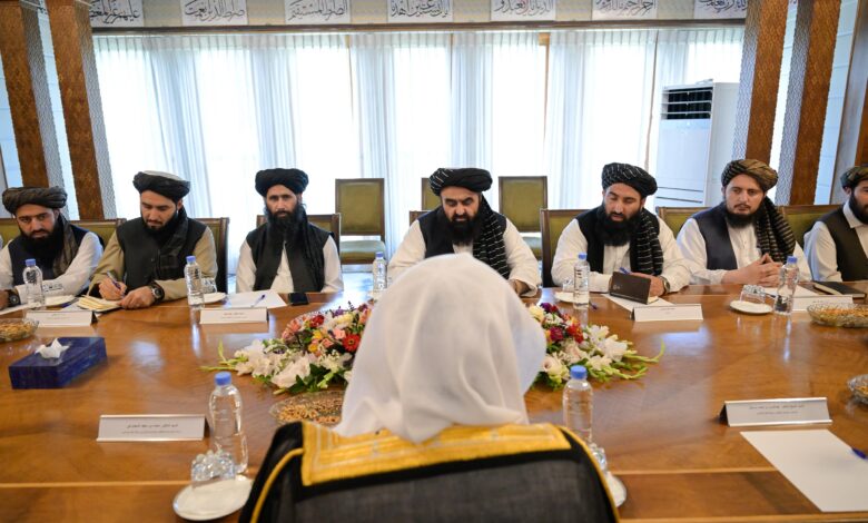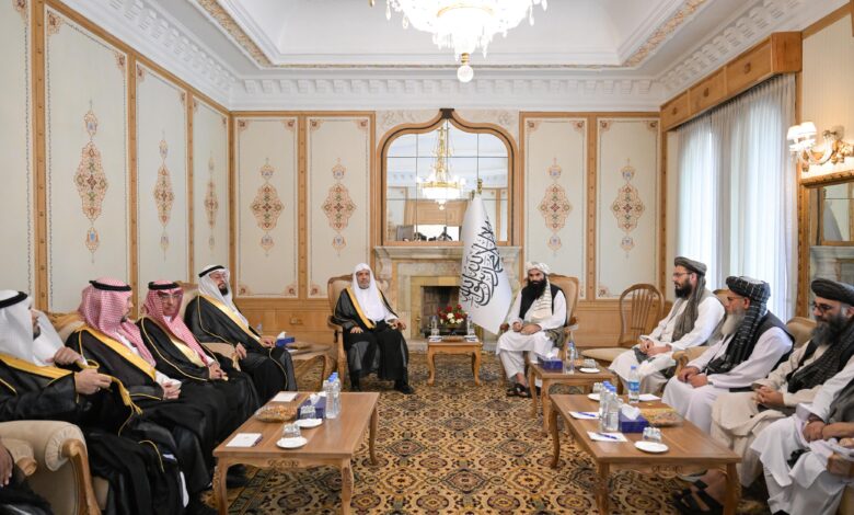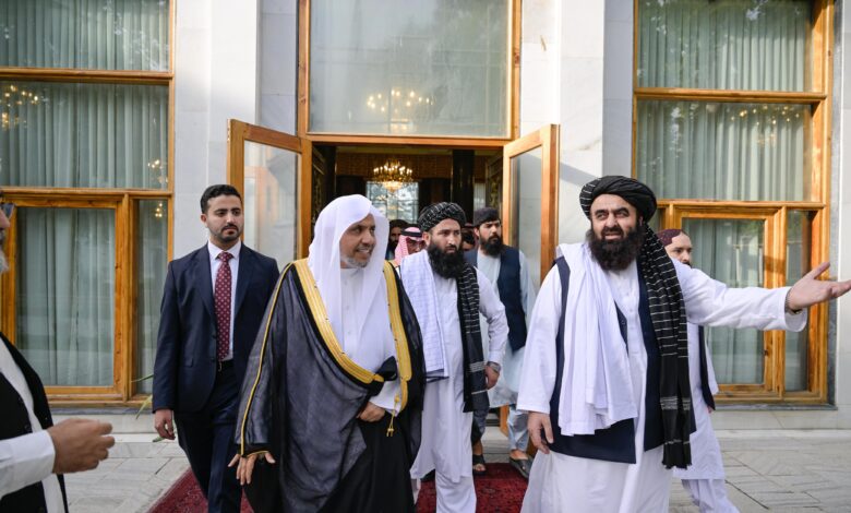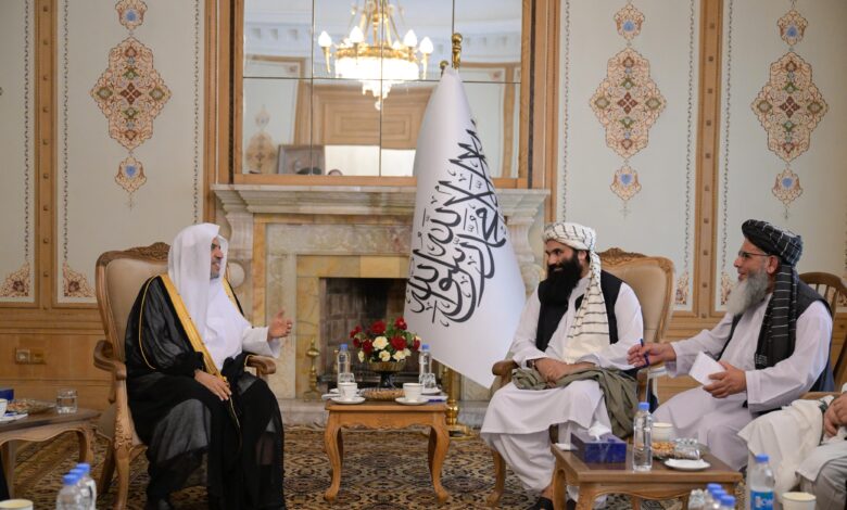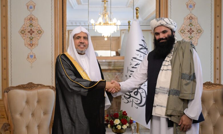 كابل (يونا) – التقى الأمين العام لرابطة العالم الإسلامي، رئيس هيئة علماء المسلمين، فضيلة الشيخ الدكتور محمد بن عبدالكريم العيسى، معاليَ وزير الخارجية الأفغاني، المولوي أمير خان متقي، في المقرّ الأول لمجلس الأمن في قصر رئاسة الوزراء.