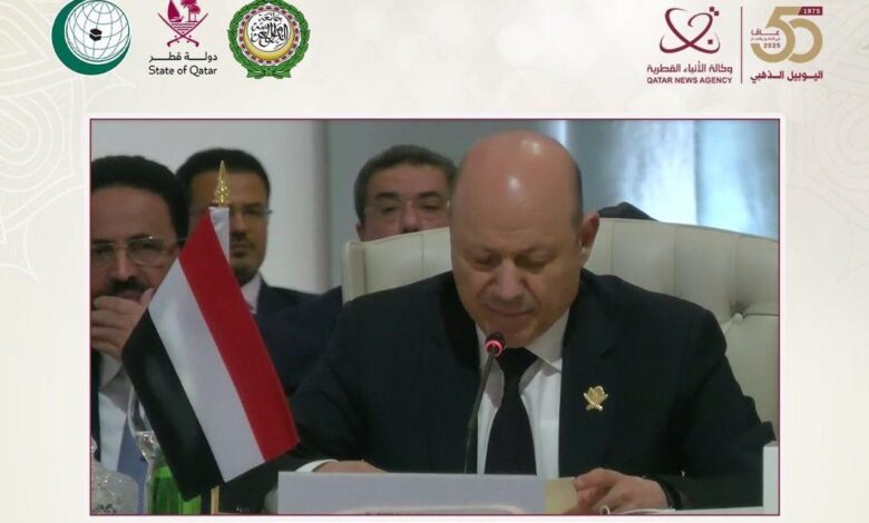 الدوحة (يونا/قنا) – دعا الرئيس الدكتور رشاد محمد العليمي رئيس مجلس القيادة الرئاسي في الجمهورية اليمنية، إلى تبني مقاربة عربية وإسلامية شاملة للعمل المشترك، وتدابير جماعية لكبح سياسات التوسع الإسرائيلية، وأوهام الهيمنة الإقليمية.