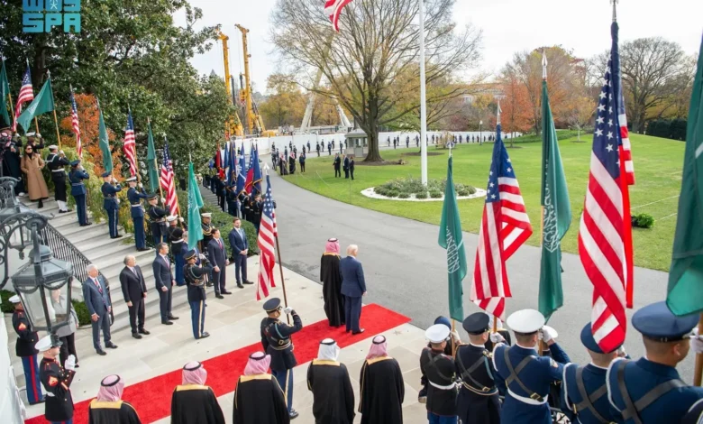 وقد جرت لولي العهد مراسم استقبال رسمية، حيث رافقت الخيالة موكب سموه لدى وصوله، ومن ثم جرى استعراض حرس الشرف، فيما عزفت الفرقة العسكرية الموسيقى، وأطلقت المدفعية 19 طلقة ترحيبًا بسمو ولي العهد، كما التقطت الصور التذكارية عند مدخل البيت الأبيض.