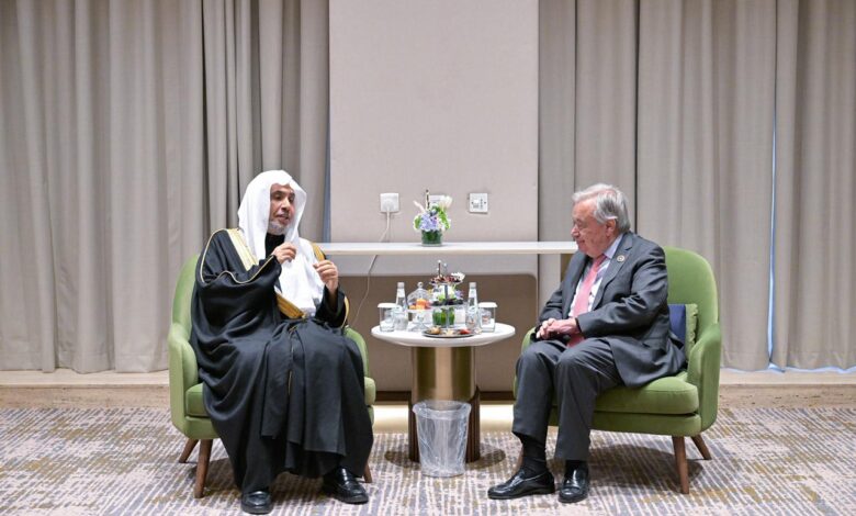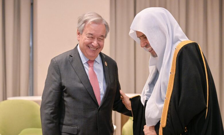 الرياض (يونا) – التقى معالي الأمين العام لرابطة العالم الإسلامي، رئيس هيئة علماء المسلمين، فضيلة الشيخ الدكتور محمد بن عبدالكريم العيسى، في العاصمة الرياض، معاليَ الأمين العام للأمم المتحدة، السيد أنطونيو غوتيريش، على هامش المنتدى العالمي الحادي عشر لتحالف الأمم المتحدة للحضارات.