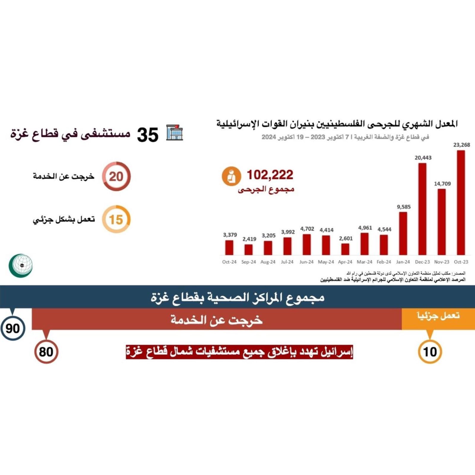 الأحد 17 ربيع الثاني 1446هـ 20-10-2024ممنظمة التعاون الإسلامي: استمرار الجرائم الإسرائيلية وصمة عار في جبين الإنسانية