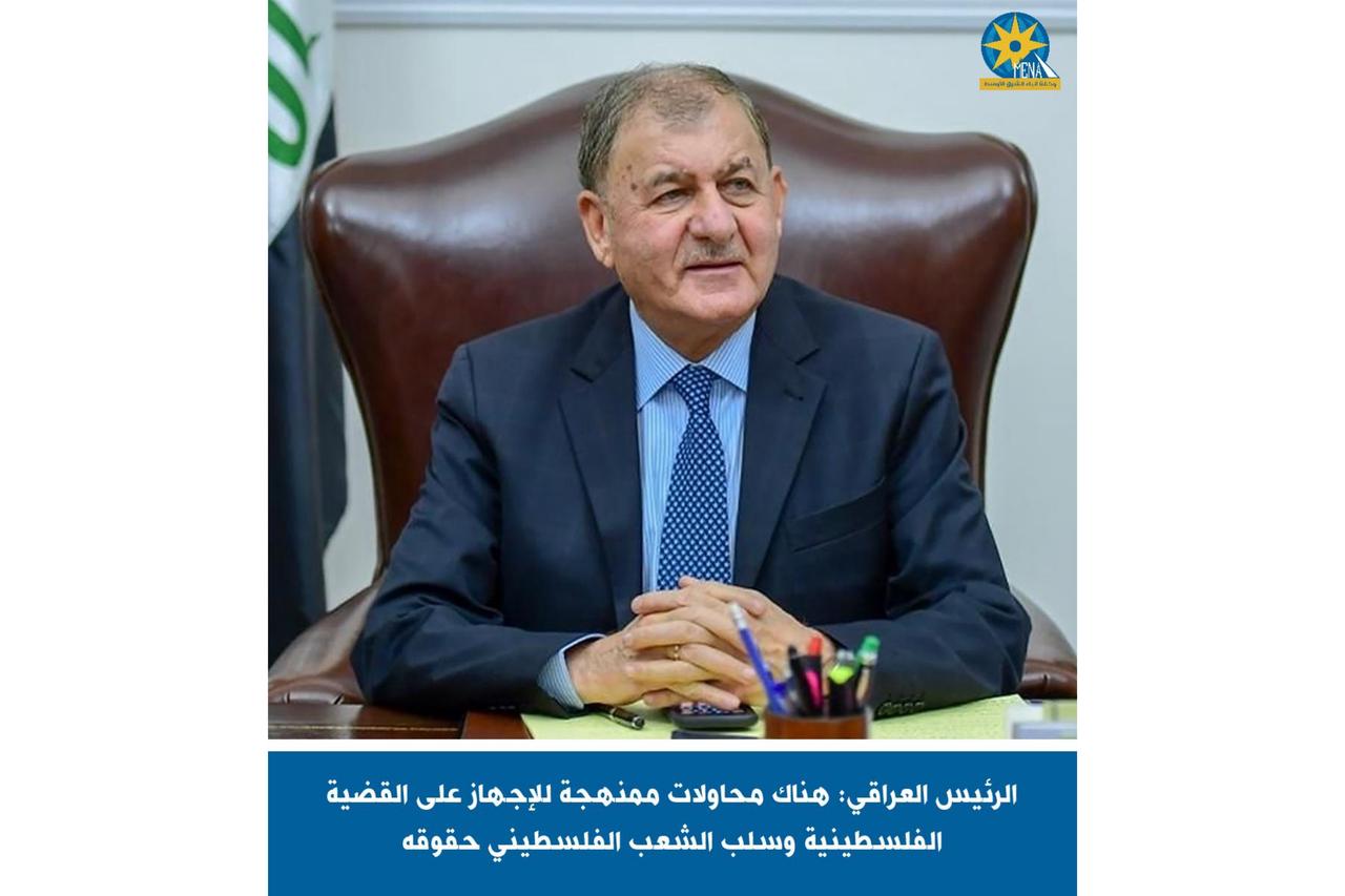 الرئيس العراقي: هناك محاولات ممنهجة للإجهاز على القضية الفلسطينية وسلب الشعب الفلسطيني حقوقه