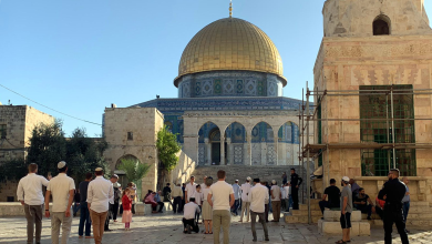 مستعمرون يقتحمون المسجد الأقصى بحماية شرطة الاحتلال الإسرائيلي.