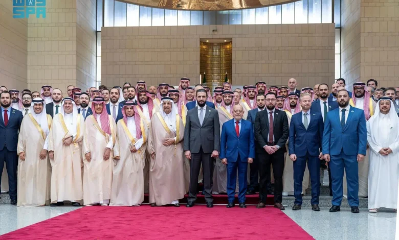 وأضاف: “وفي العقود الماضية، ظلت المملكة العربية السعودية وسوريا وجهين لعملةٍ اجتماعية واقتصادية وسياسيةٍ واحدة، فبينما مثَّلت سوريا مركزًا مفضلًا لأبناء الأسر السعودية، من العُقيلات، التي امتهنت التجارة، ظلت المملكة العربية السعودية مأرِزًا لكل سوريٍ حرٍّ أبيّ، ولذلك فإن لقاء صاحب السمو الملكي، الأمير محمد بن سلمان بن عبدالعزيز آل سعود، ولي العهد، رئيس مجلس الوزراء، بفخامتكم، في شهري فبراير ومايو الماضيين، إنما أتى على هذه الخلفية التاريخية والإنسانية؛ ليُعززها ويفتح أمامها أبوابًا أوسع، ومجالاتٍ واعدةٍ لاستشراف المستقبل، والبناء باتجاهه في تكاتفٍ وتكامل بين بلدينا وحكومتينا وشعبينا، بما في ذلك مؤسسات القطاع الخاص السعودي، وهذا ينقلنا إلى دلالات هذه الزيارة، التي تعكس حرص المملكة العربية السعودية على تنمية علاقاتها مع سوريا، في شطرها الاقتصادي والاستثماري”.