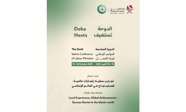 الدوحة (يونا) – يرعى الشيخ محمد بن عبدالرحمن بن جاسم آل ثاني، رئيس مجلس الوزراء القطري، وزير الخارجية، غدا الخميس 16 أكتوبر 2025، اجتماع الدورة السادسة لوزراء العمل في دول منظمة التعاون الإسلامي، تحت شعار “تجارب محلية، إنجازات عالمية: قصص نجاح في العالم الإسلامي”.