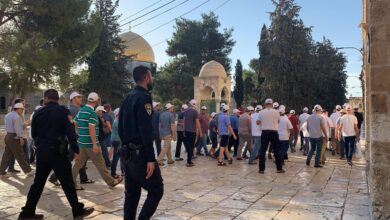 Hundreds of settlers storm Al-Aqsa Mosque under the protection of the occupation police.