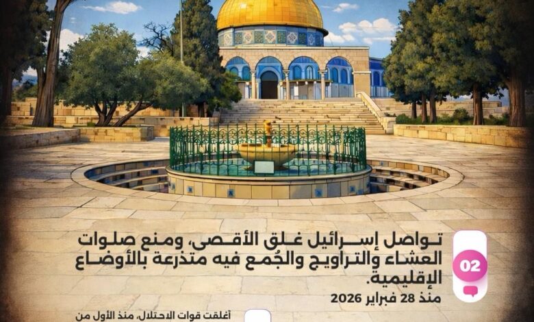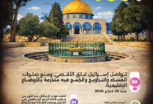 وواصلت على مدى الأسبوع المنصرم منع المصلين من الوصول إلى المسجد الأقصى المبارك، كما منعت صلاتي العشاء والتراويح بالإضافة إلى صلاة الجمعة، وأغلقت الحرم الإبراهيمي في الخليل ومنعت الصلاة فيه.