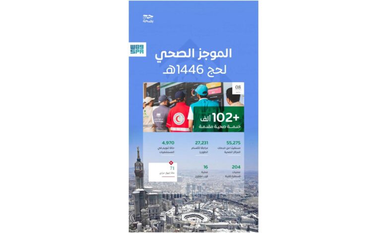 المنظومة الصحية تقدّم أكثر من 102 ألف خدمة صحية لضيوف الرحمن حتى ثامن أيام ذي الحجة