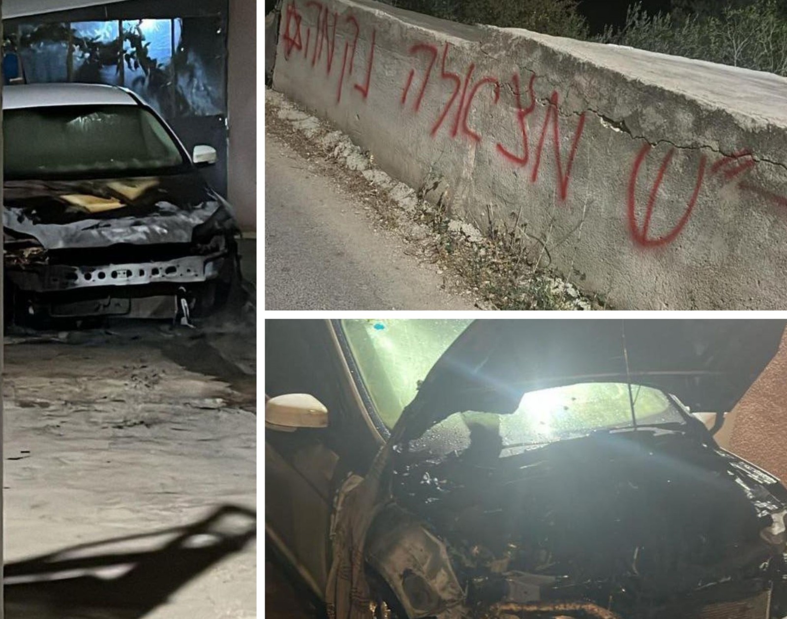 مستعمرون يحرقون مركبات ويخطون شعارات عنصرية في رمون شرق رام الله