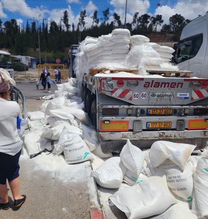 مستعمرون يمنعون مرور شاحنات مساعدات من الضفة إلى غزة