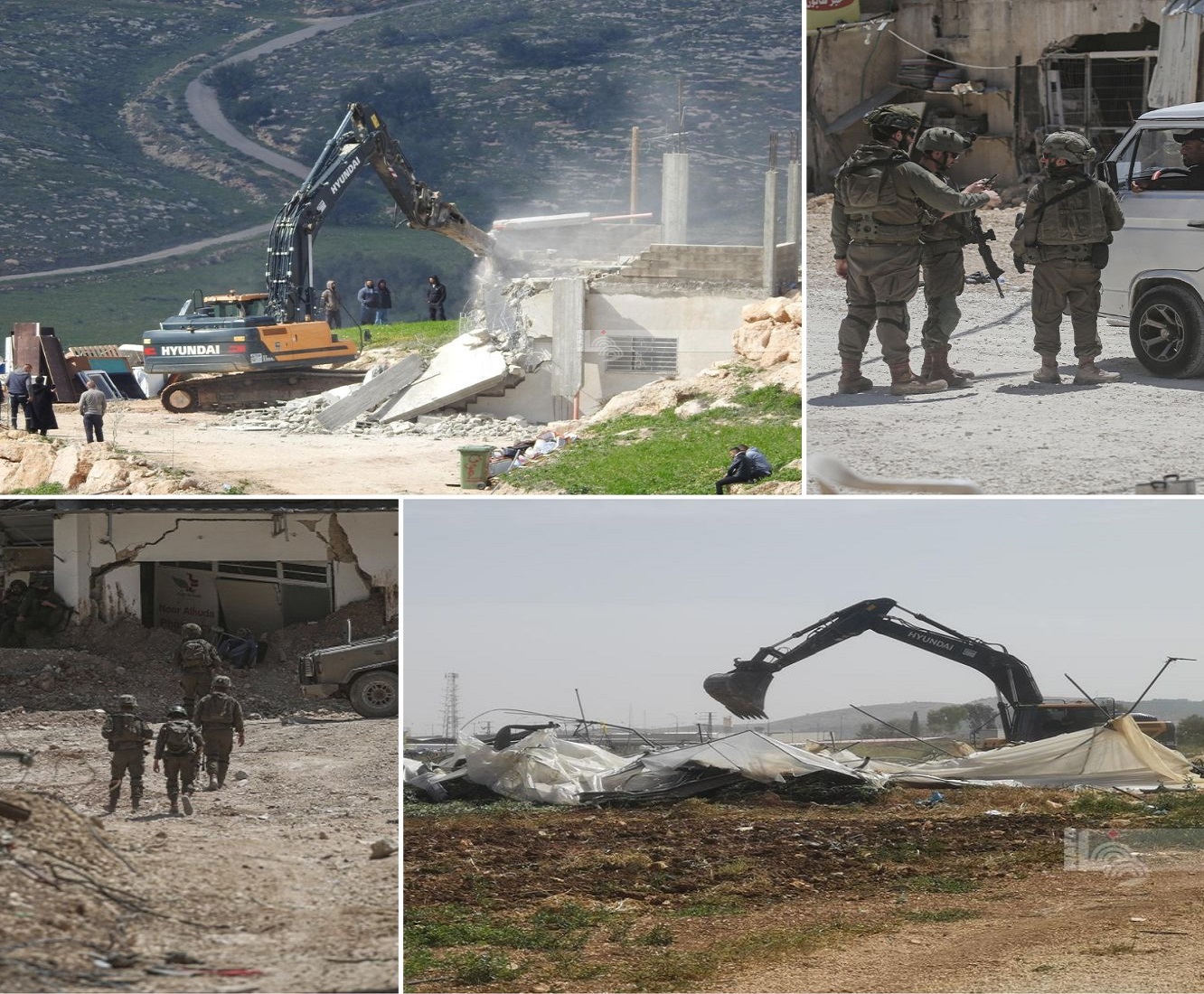 الاحتلال يهدم منزلا في نابلس ومنشأة زراعية ببيت لحم ويواصل عدوانه على طولكرم لليوم الـ102