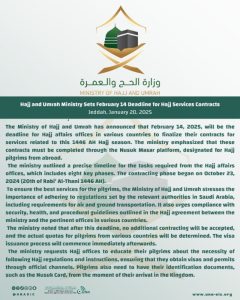 وزارة الحج والعمرة تحدد 14 فبراير موعدًا نهائيًا لتعاقدات مكاتب شؤون الحج على الخدمات