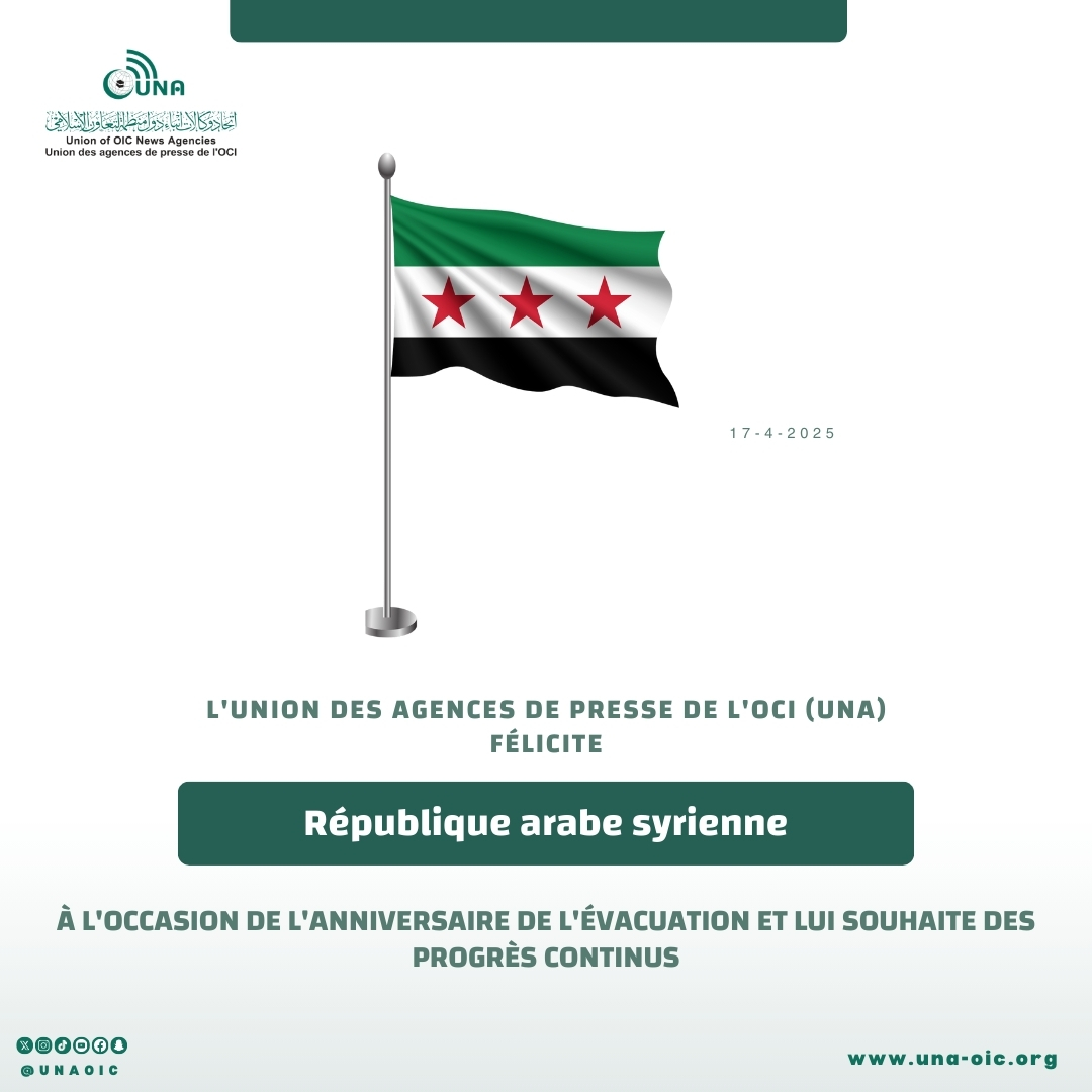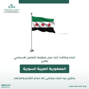 ‏⁧‫إنفوجرافيك تهنئة “يونا” للجمهورية العربية السورية بذكرى (عيد الجلاء)