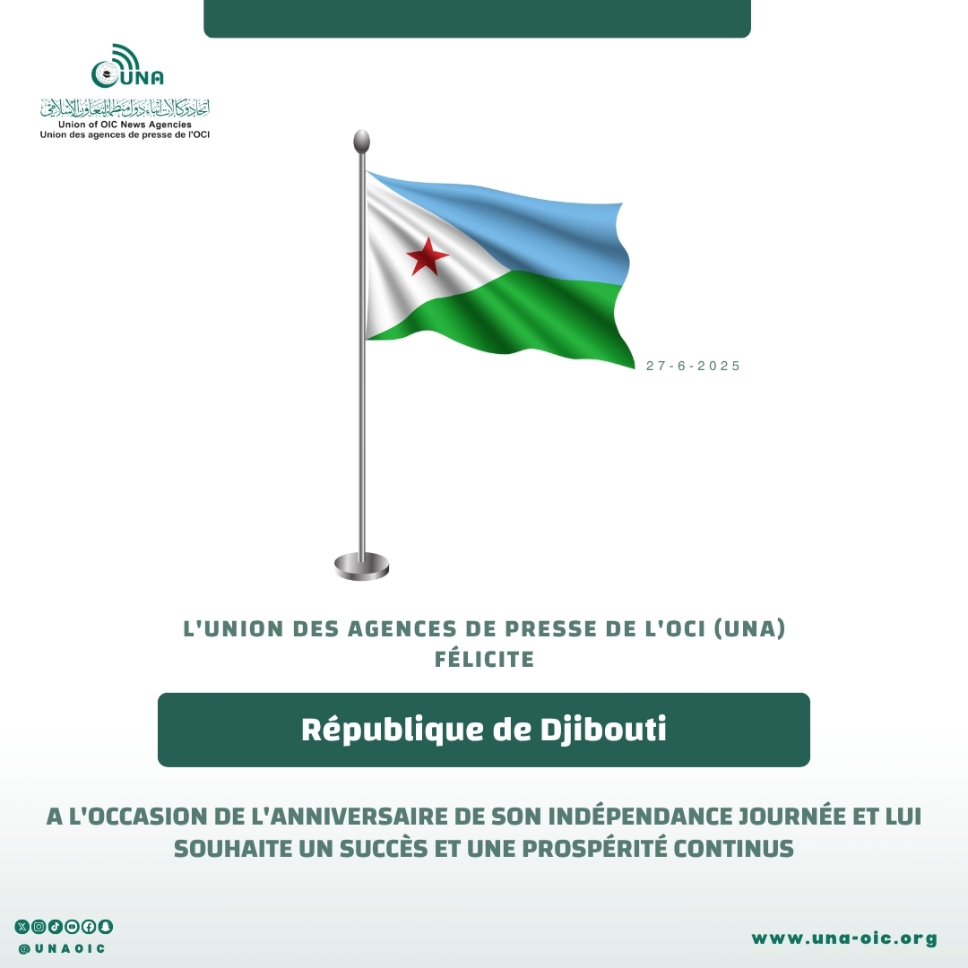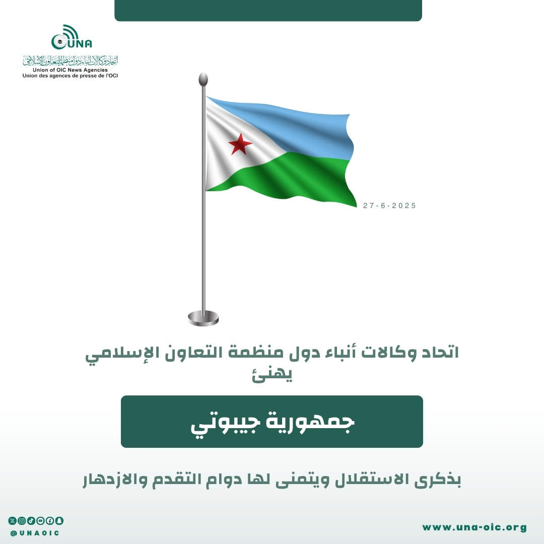 إنفوجرافيك تهنئة “يونا” لجمهورية جيبوتي بذكرى (يوم الاستقلال)