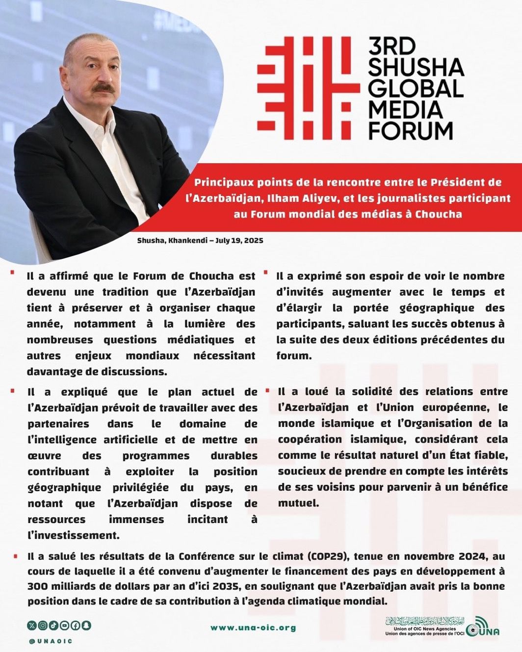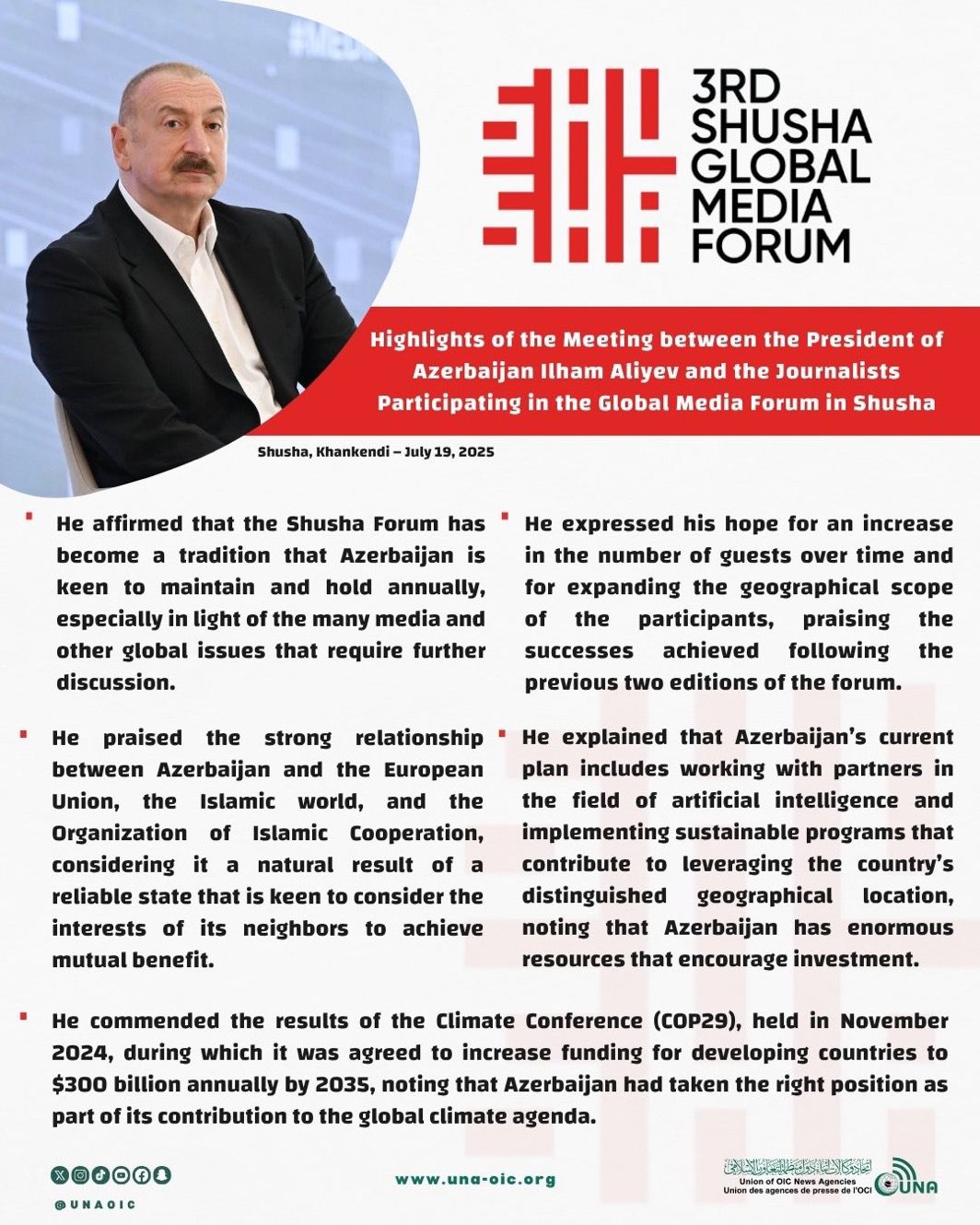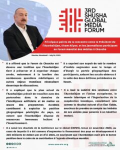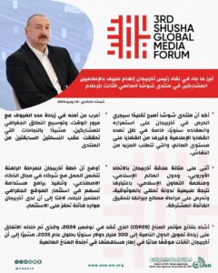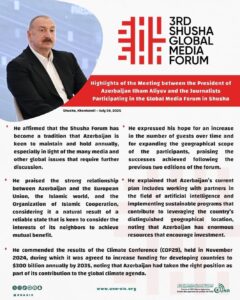 أبرز ما جاء في لقاء رئيس أذربيجان إلهام علييف بالإعلاميين المشاركين في منتدى شوشا العالمي الثالث للإعلام