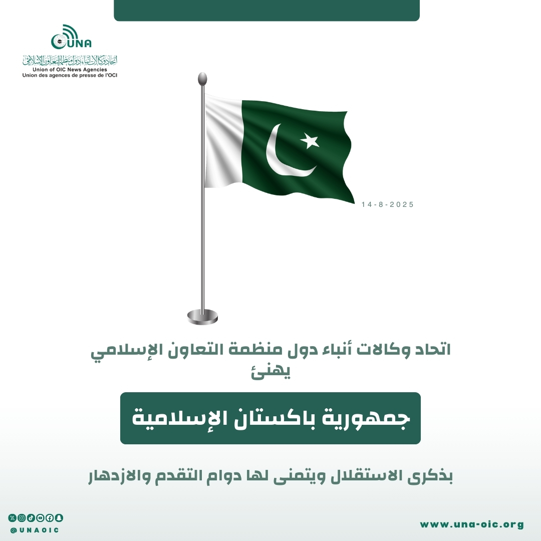إنفوجرافيك تهنئة “يونا” لجمهورية باكستان الإسلامية بذكرى (يوم الاستقلال)
