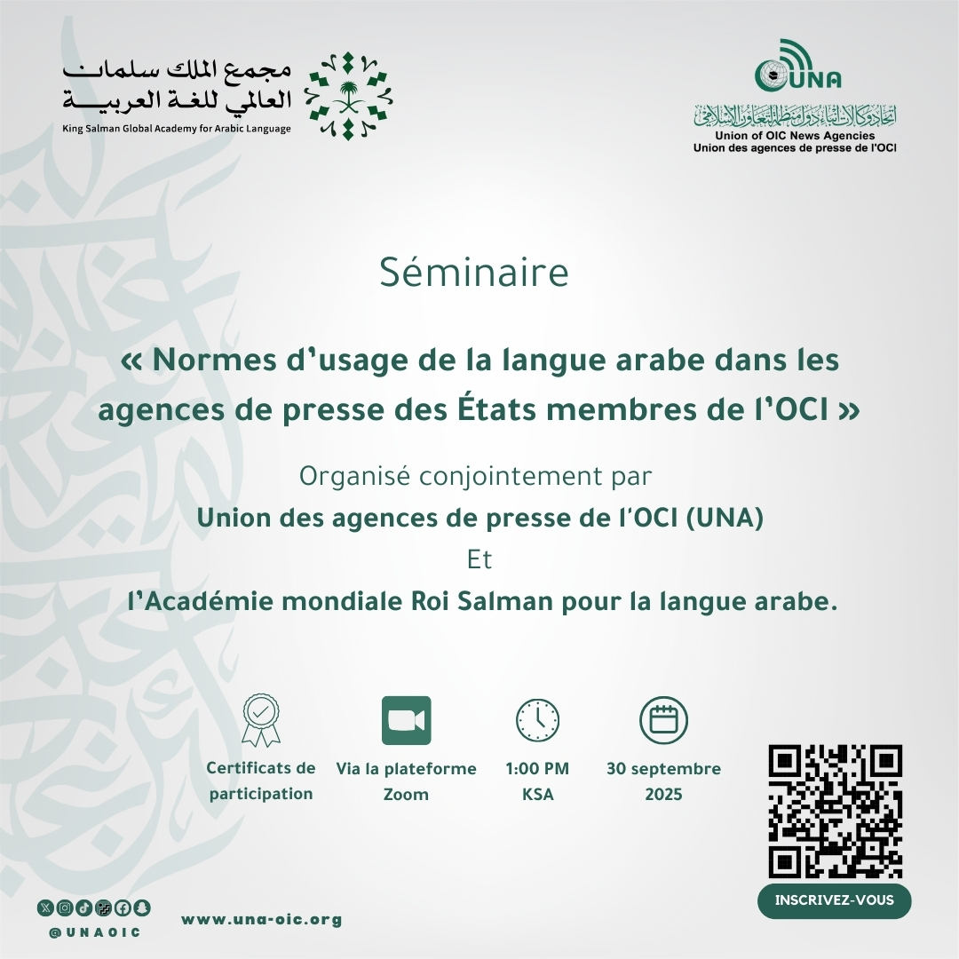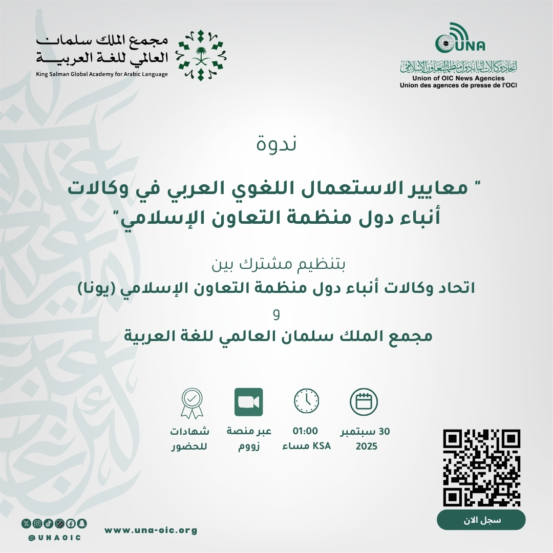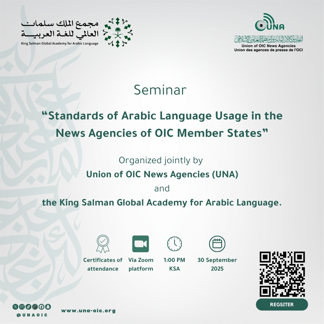 "يونا" ومجمع الملك سلمان العالمي للغة العربية ينظمان ندوة "معايير الاستعمال اللغوي العربي في وكالات أنباء دول منظمة التعاون الإسلامي