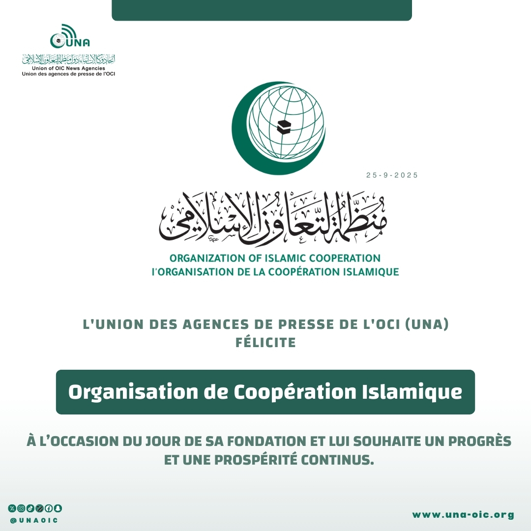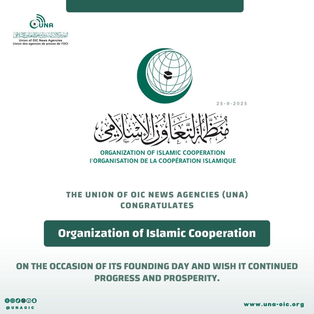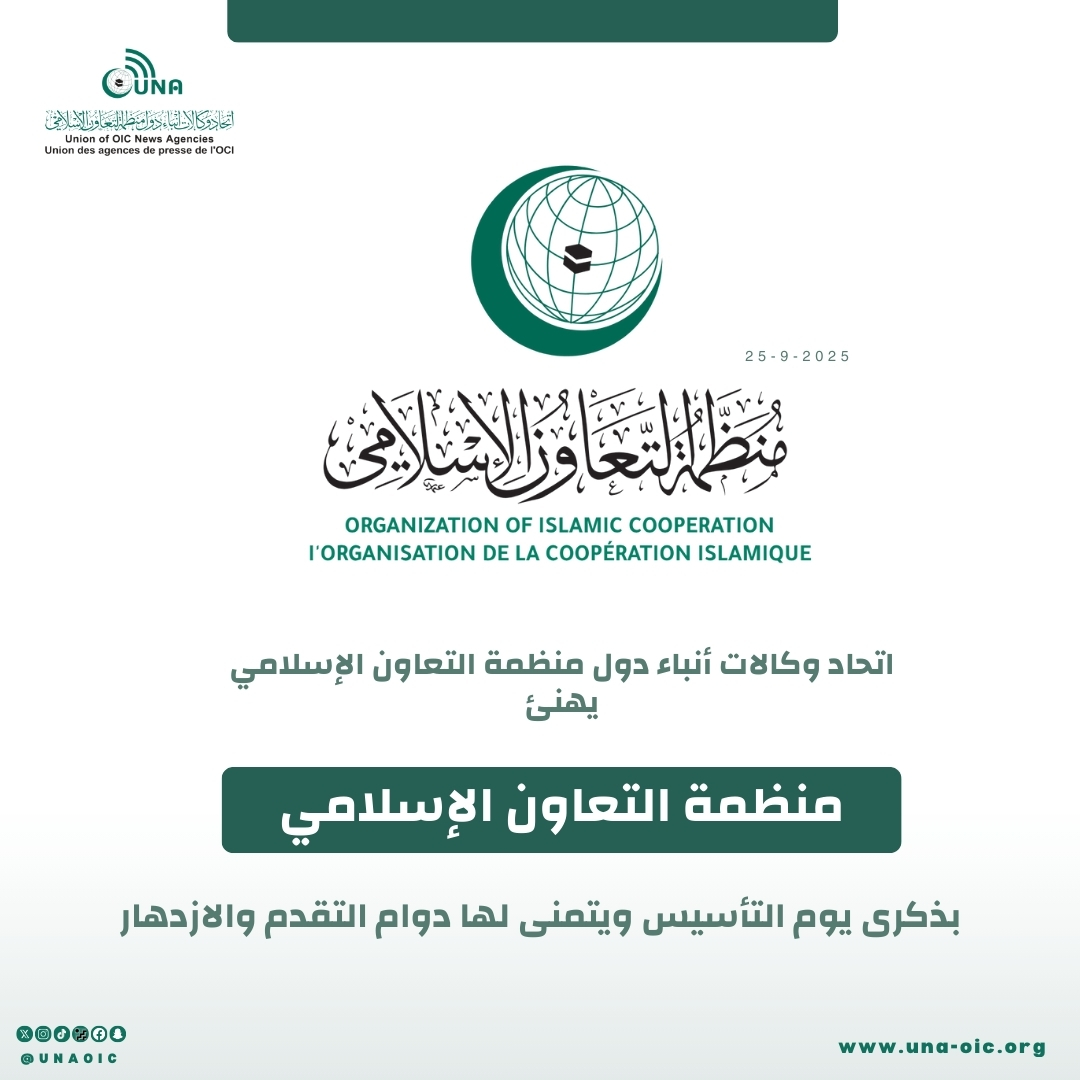 ‏⁧‫إنفوجرافيك تهنئة “يونا” لمنظمة التعاون الإسلامي بذكرى (يوم التأسيس)