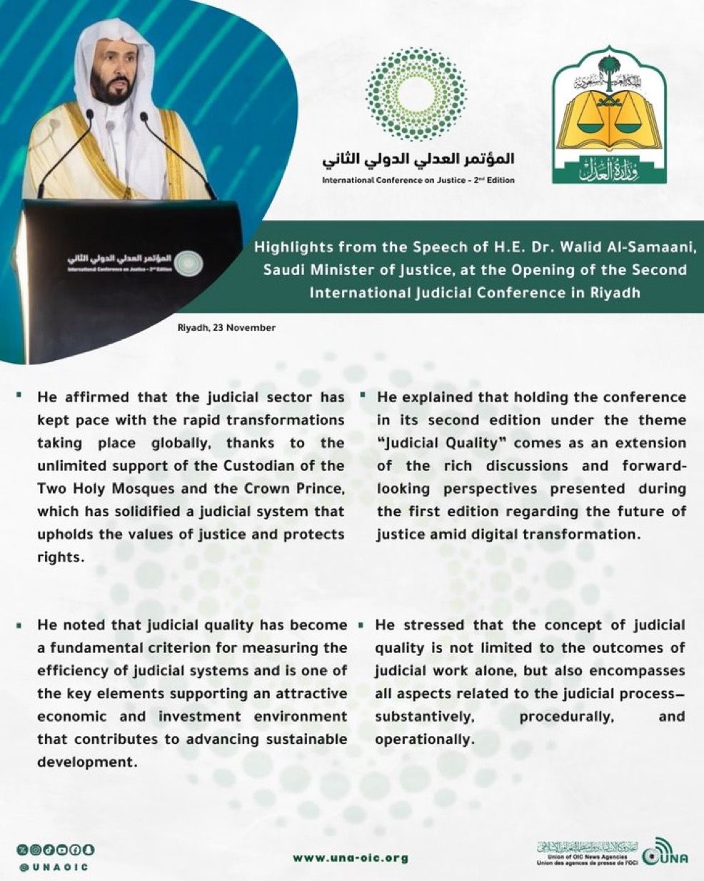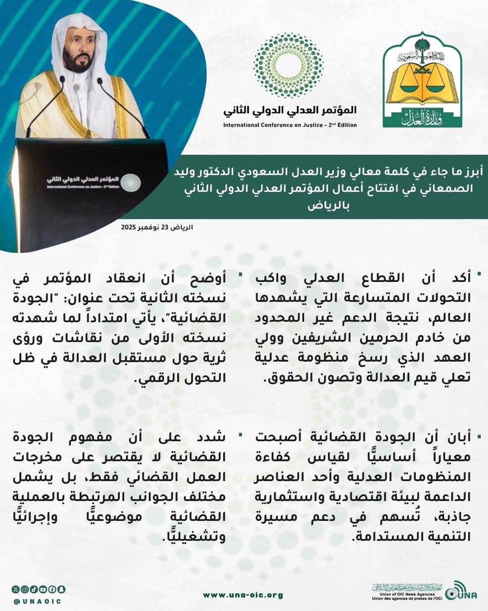 أبرز ما جاء في كلمة معالي وزير العدل السعودي الدكتور وليد الصمعاني في افتتاح أعمال المؤتمر العدلي الدولي الثاني بالرياض