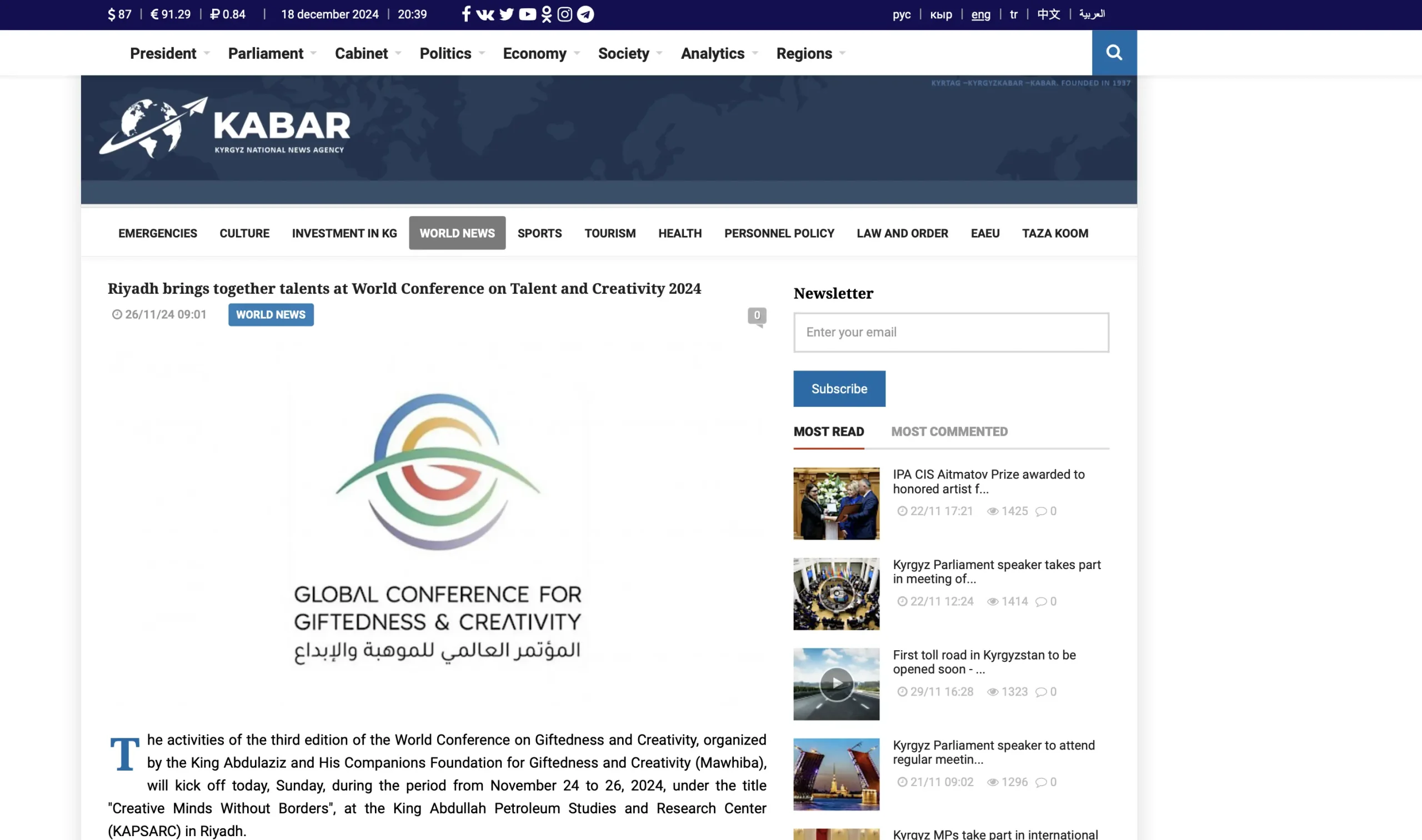 تغطية اتحاد وكالات أنباء "لتعاون الإسلامي" للمؤتمر العالمي للموهبة والإبداع