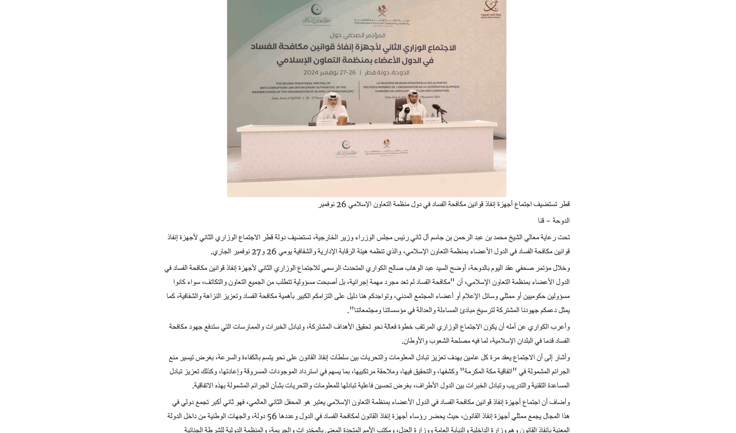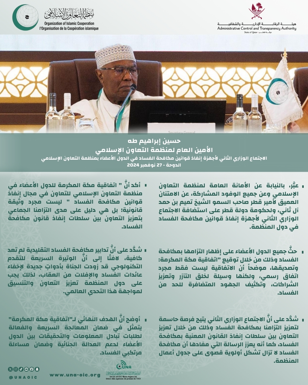 الاجتماع الوزاري الثاني لأجهزة إنفاذ قوانين مكافحة الفساد في الدول الأعضاء بمنظمة التعاون الإسلامي