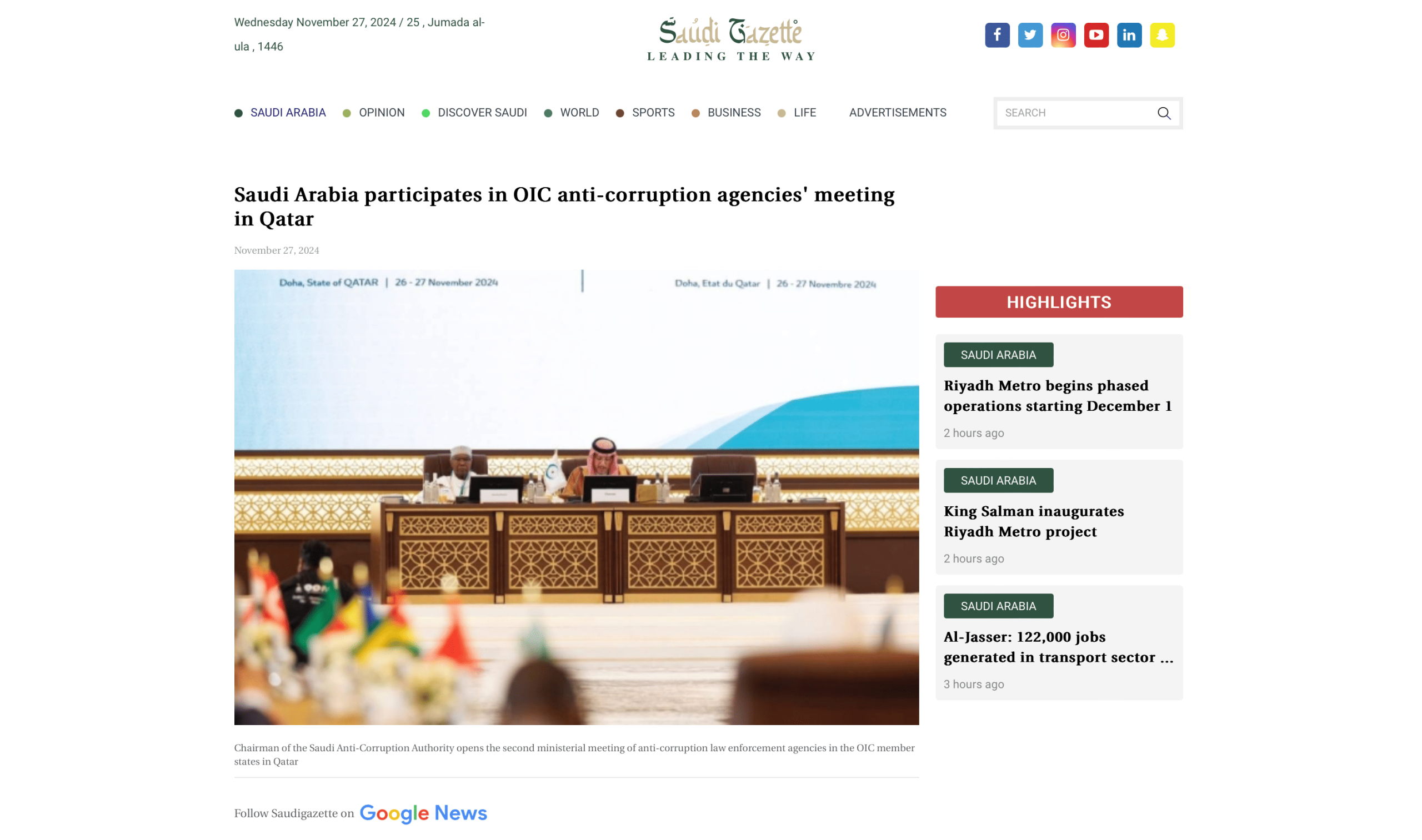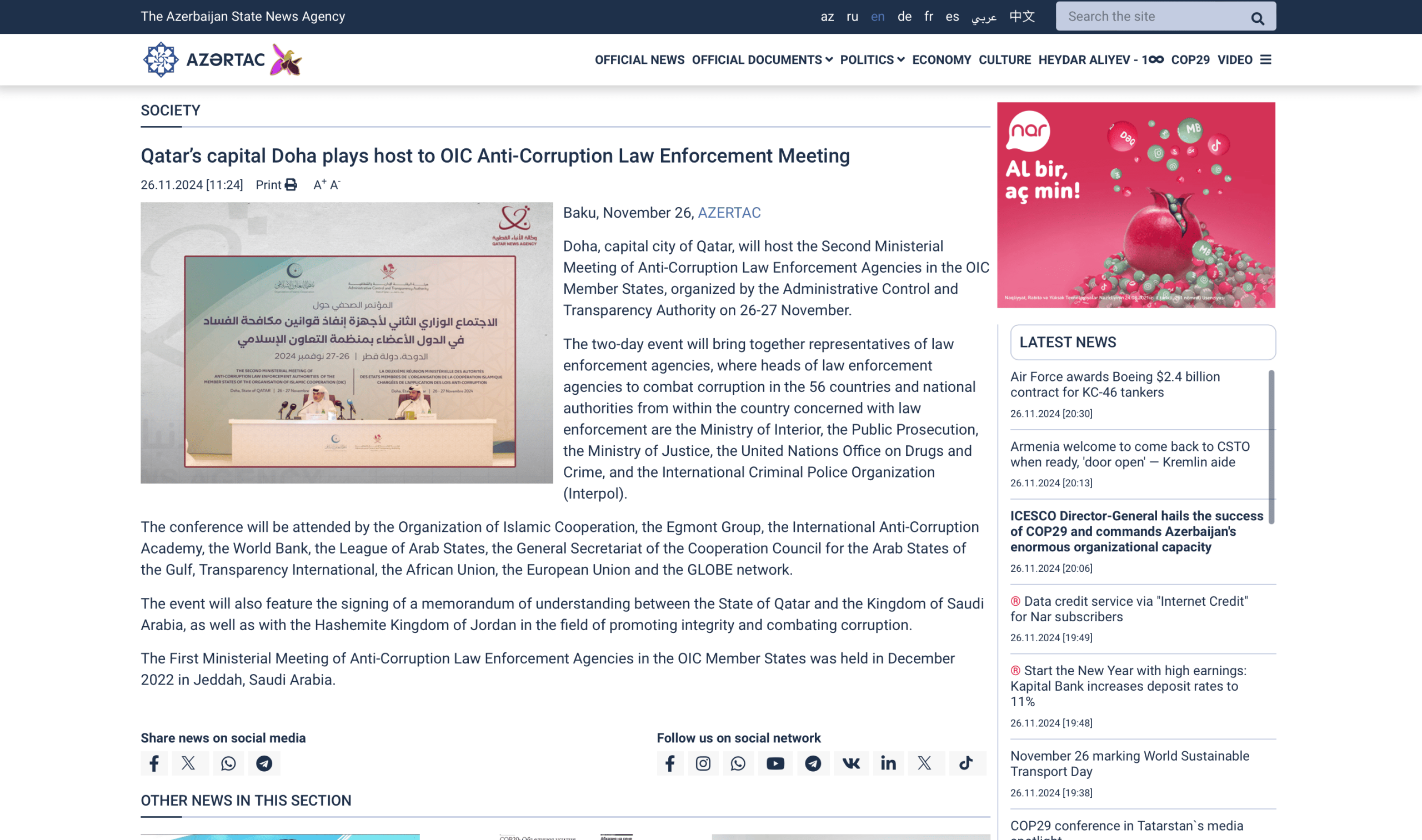 تغطية يونا للاجتماع الوزاري الثاني لأجهزة إنفاذ قوانين مكافحة الفساد في دول منظمة التعاون الإسلامي