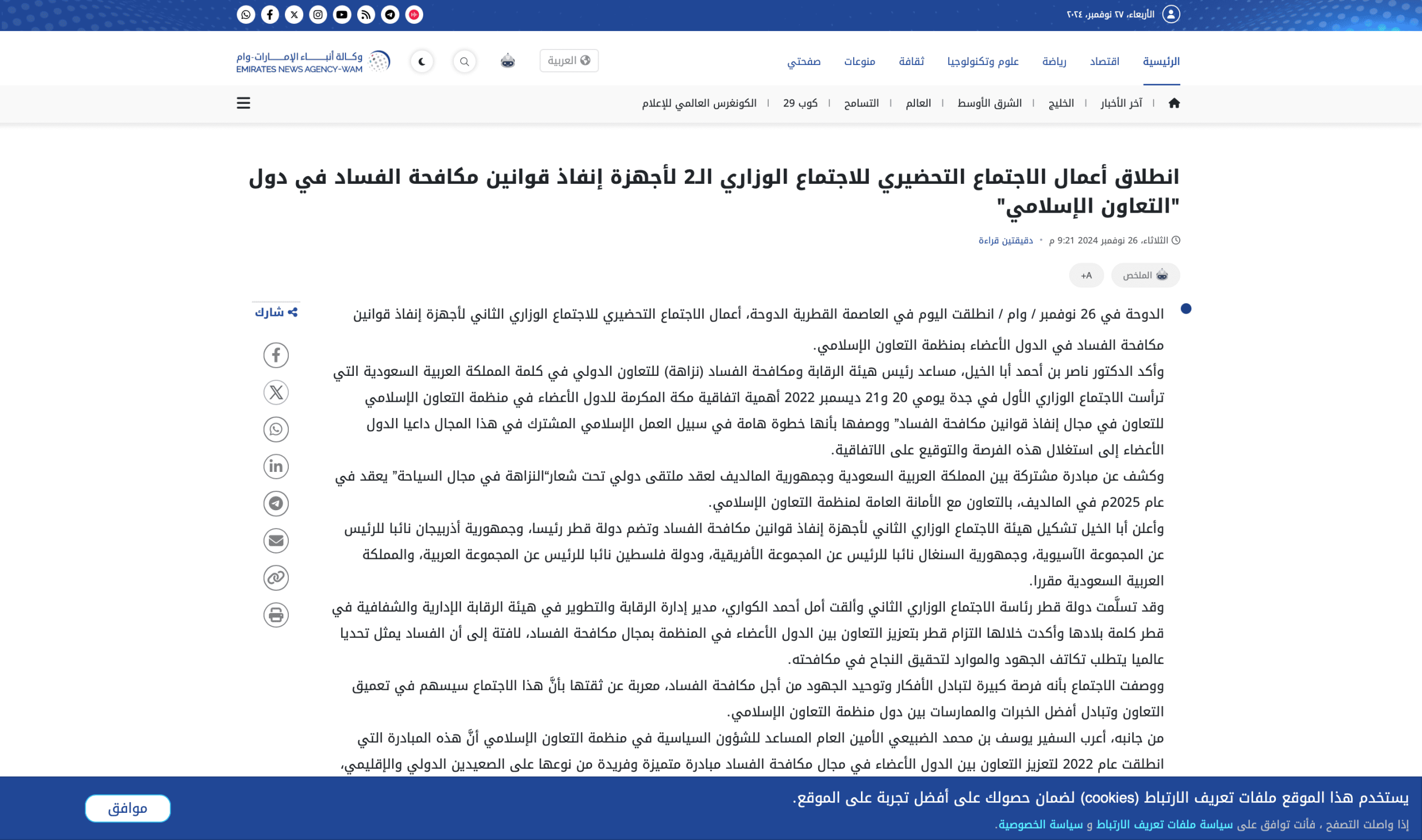 الاجتماع التحضيري للاجتماع الوزاري الثاني لأجهزة إنفاذ قوانين مكافحة الفساد بدول "التعاون الإسلامي"