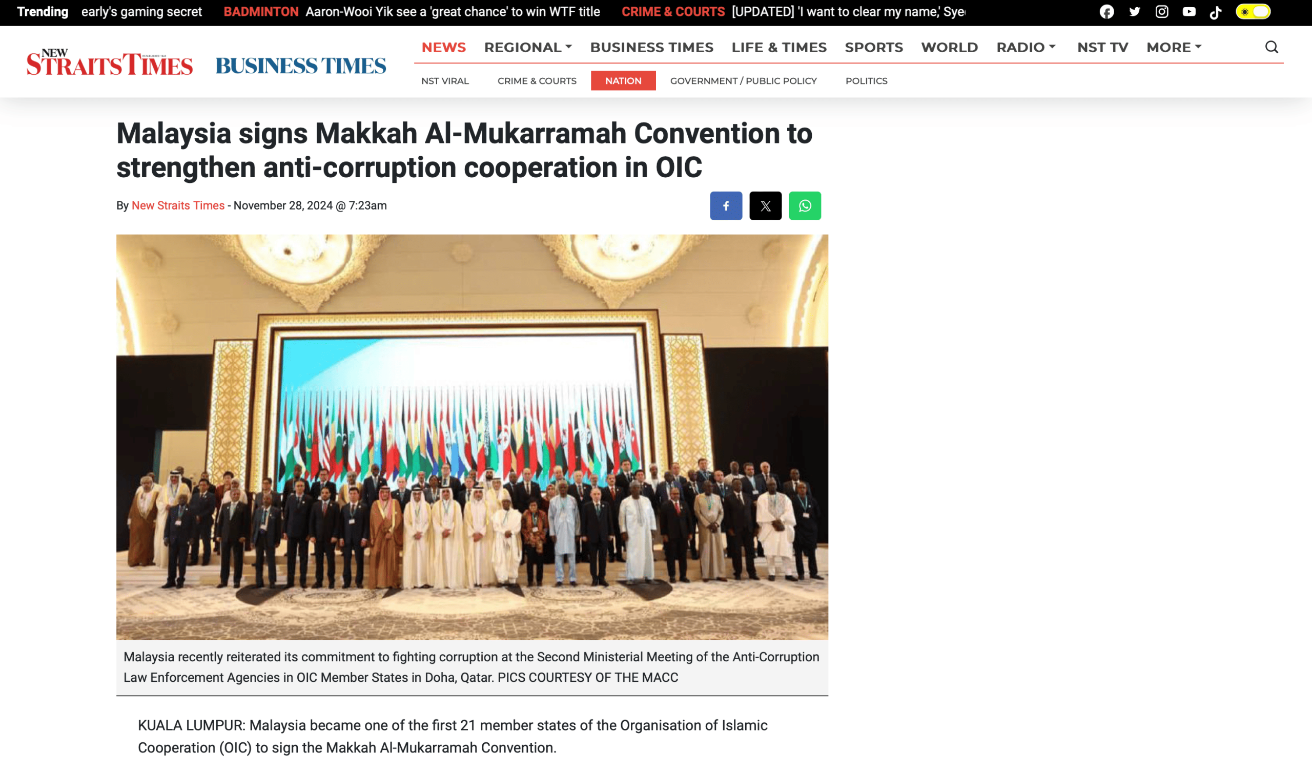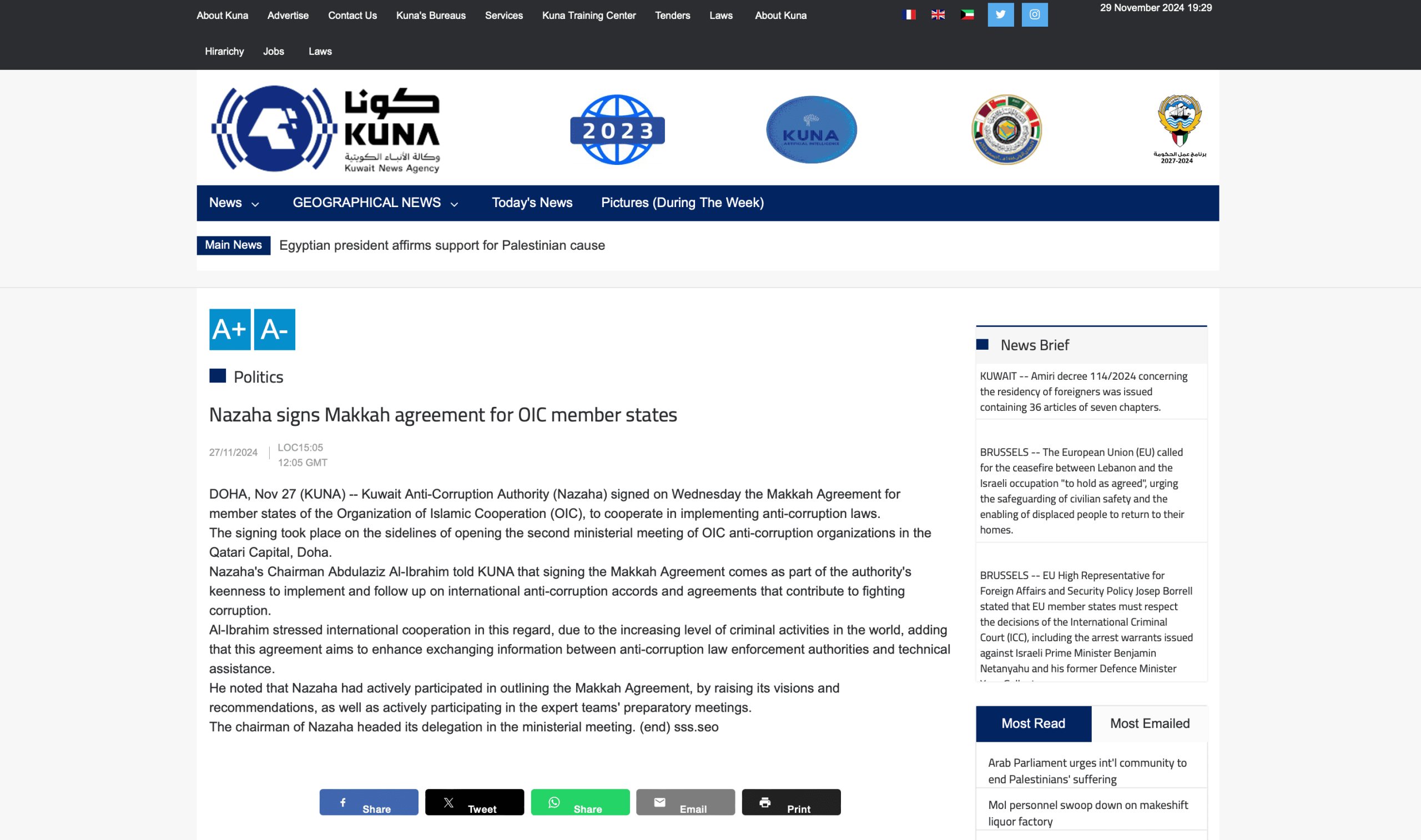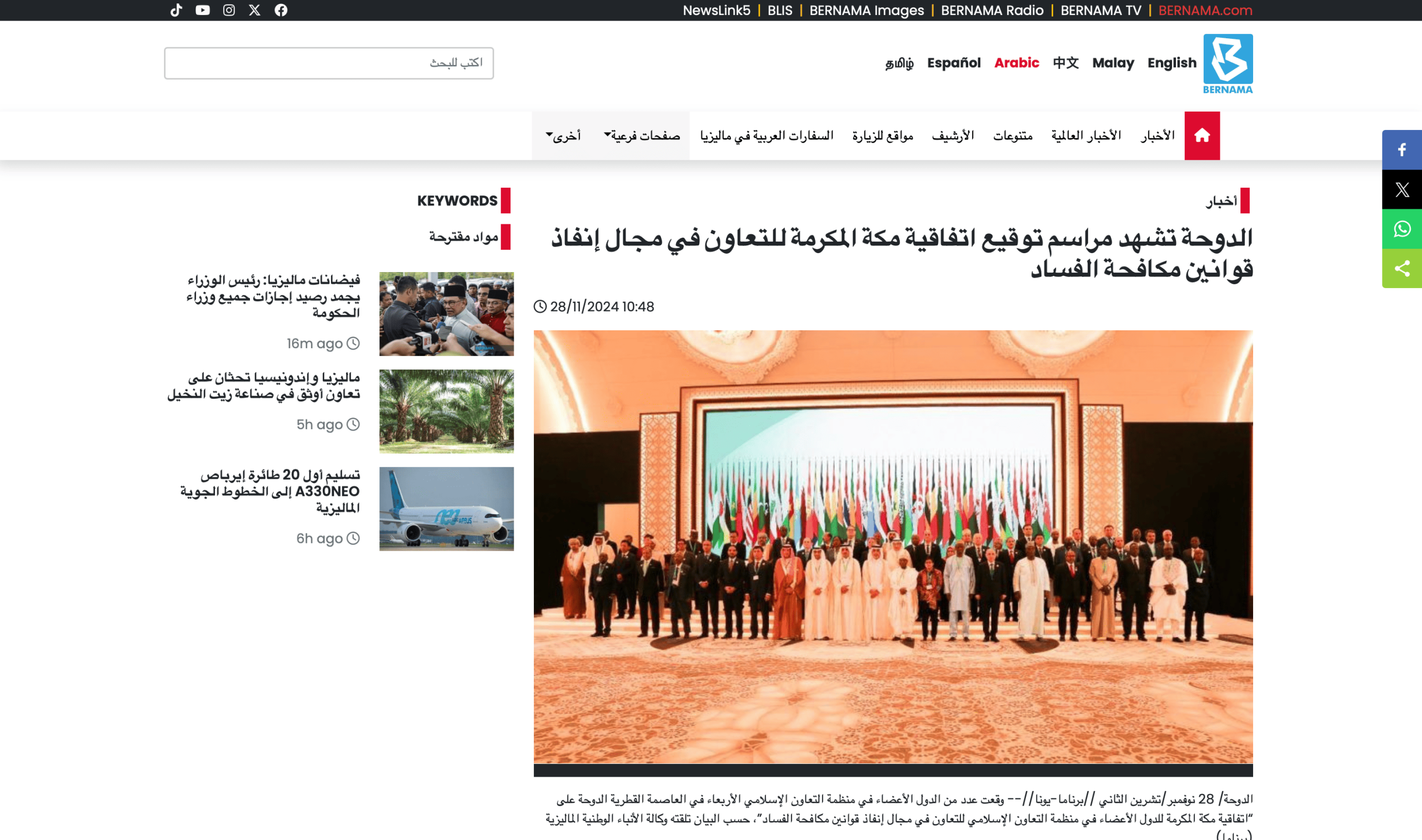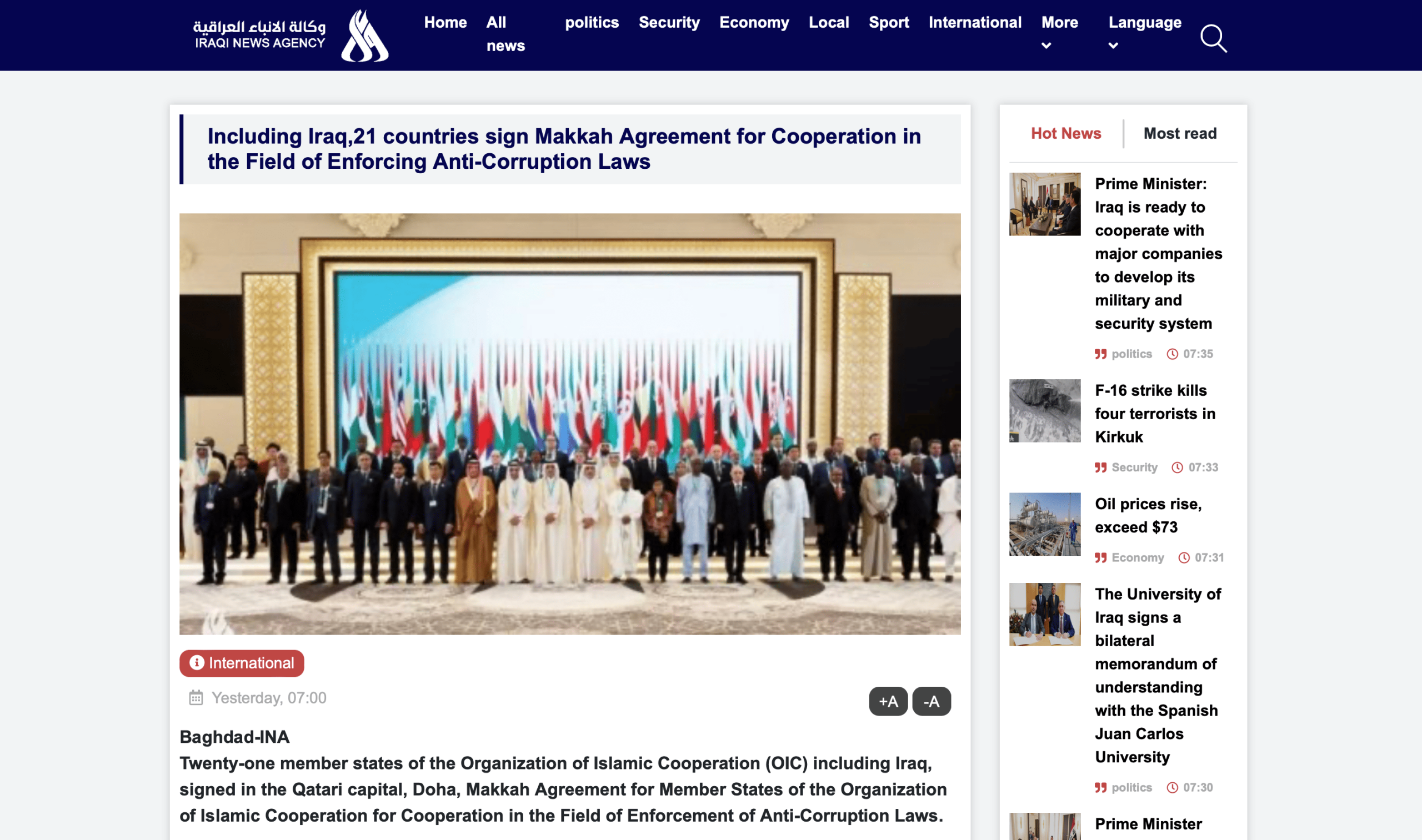 اتفاقية مكة المكرمة للدول الأعضاء بمنظمة التعاون الإسلامي للتعاون في مجال إنفاذ قوانين مكافحة الفساد