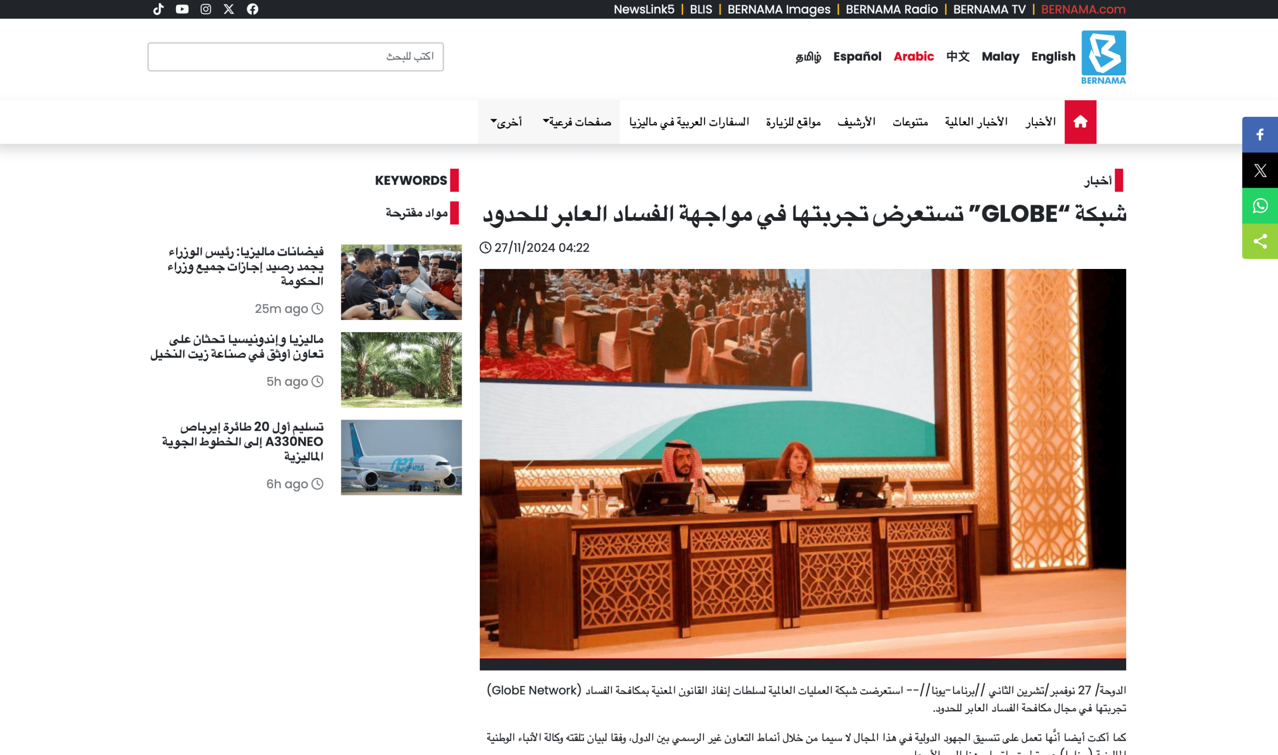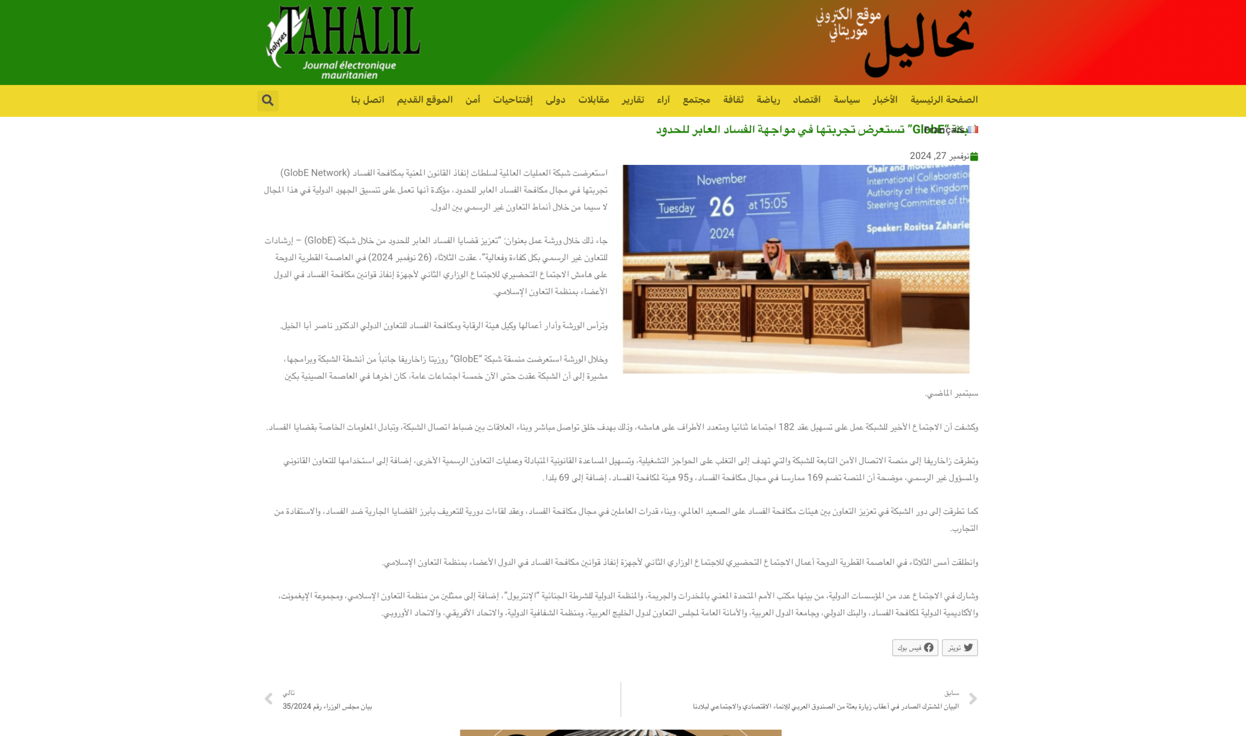 تعزيز قضايا الفساد العابر للحدود من خلال شبكة (GlobE) إرشادات للتعاون غير الرسمي بكل كفاءة وفعالية