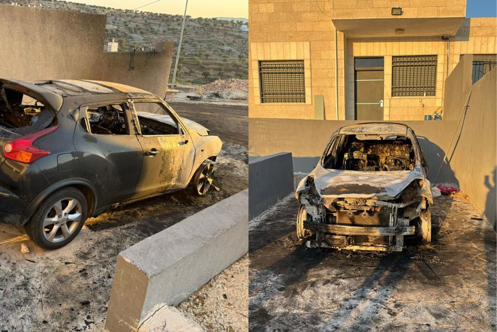 مستعمرون يهاجمون بلدة الطيبة قرب رام الله ويحرقون مركبتين ويخطون شعارات عنصرية
