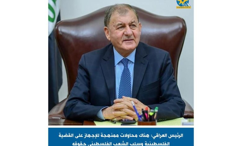 القاهرة (يونا) – أكد عبد اللطيف جمال رشيد، رئيس جمهورية العراق، أن العراق يجدد موقفه الثابت والداعم للشعب الفلسطيني وحقه المشروع في إقامة دولته المستقلة، مشددًا على أن هناك محاولات ممنهجة للإجهاز على القضية الفلسطينية وسلب الشعب الفلسطيني حقوقه التاريخية في أرضه.