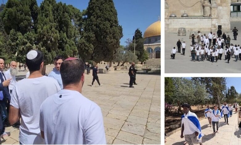 وأفادت مصادر محلية، بأن نحو 1500 مستعمر اقتحموا المسجد الأقصى، وأدوا طقوسا تلمودية واستفزازية في باحاته، فيما قامت مستعمرة برفع علم الاحتلال والرقص فيه عند المنطقة الشرقية من المسجد، وذلك تزامنا مع نشر شرطة الاحتلال حواجز حديدية في محيط باب العامود والبلدة القديمة للتضييق على المقدسيين وسط إجراءات عسكرية مشددة.