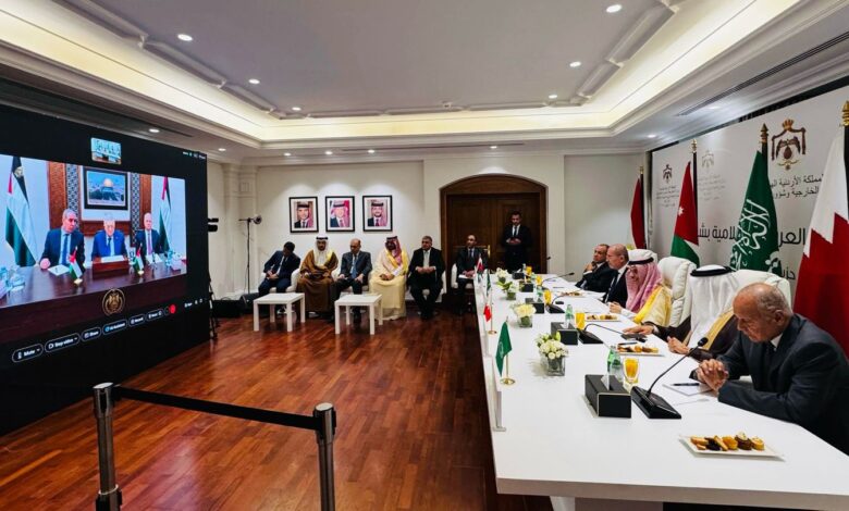 وألقى الرئيس عباس كلمة في بداية الاجتماع قال فيها: “نرحب بأشقائنا أعضاء اللجنة الوزارية العربية الإسلامية في فلسطين برئاسة الأمير فيصل بن فرحان رئيس اللجنة الوزارية العربية، والوزراء أعضاء اللجنة الذين نلتقي بهم بالرغم من رفض حكومة الاحتلال قدومهم إلينا، وبالرغم من رفض كل جهد عربي ودولي يقود إلى إنهاء هذه الحرب التي يعاني منها الشعب الفلسطيني، ومنع أشقائنا العرب من الانضمام إلينا واستقبالهم على أرض دولة فلسطين”.