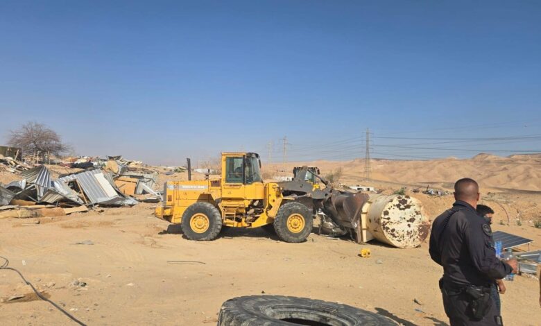 النقب (يونا/وفا) – هدمت آليات وجرافات السلطات الإسرائيلية، صباح اليوم الأربعاء، 15 منزلا في قرية عرب المسك مسلوبة الاعتراف والمهددة بالاقتلاع والتهجير في منطقة النقب.