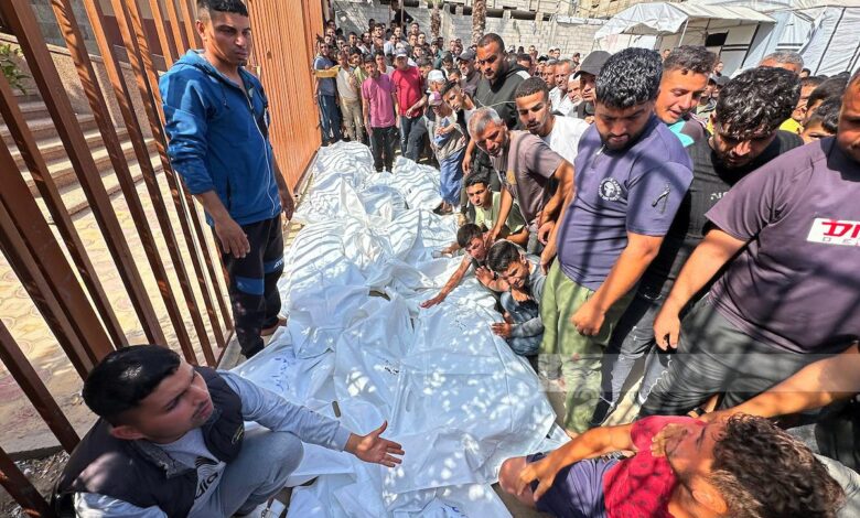 وفي مدينة دير البلح، استهدفت طائرات الاحتلال محيط مقر الهلال الأحمر غرب المدينة، ما أدى إلى سقوط شهداء وعدد من الجرحى.