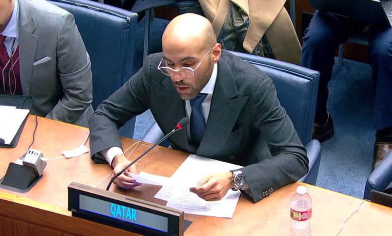 جاء ذلك في بيان دولة قطر الذي ألقاه الشيخ جاسم بن عبد العزيز آل ثاني، سكرتير ثان بالوفد الدائم لدولة قطر لدى الأمم المتحدة، أمام اللجنة الرابعة للجمعية العامة للأمم المتحدة خلال دورتها الثمانين، حول البند (50) بشأن”تقرير اللجنة الخاصة المعنية بالتحقيق في الممارسات الإسرائيلية، التي تمس حقوق الإنسان للشعب الفلسطيني وغيره من السكان العرب في الأراضي المحتلة”، في مقر الأمم المتحدة بنيويورك.