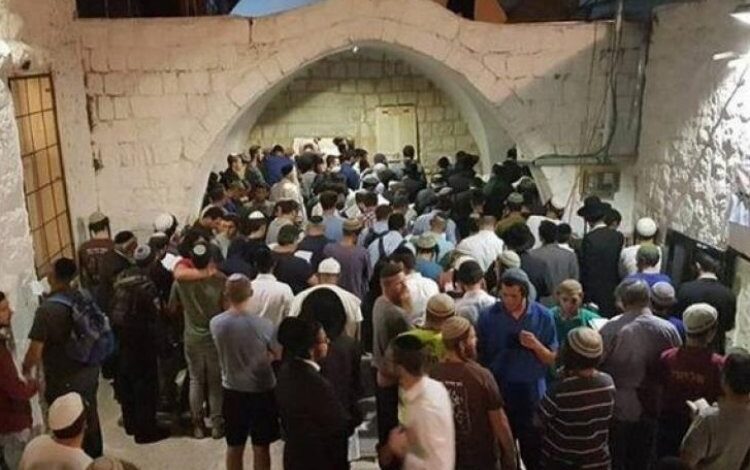 وأفادت مصادر محلية لـ”وفا”، بأن عشرات المستعمرين اقتحموا المقامات الإسلامية في البلدة، وقاموا بتدنيسها من خلال أداء شعائر وطقوس تلمودية وإيقاد شعلة، وسط أجواء من الصراخ وترهيب المواطنين.