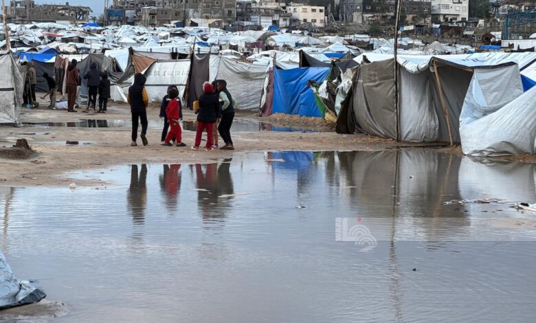 وتسببت رياح قوية وأمطار غزيرة، في غرق عدد من خيام النازحين وتطاير أخرى بمناطق متفرقة من قطاع غزة، خاصة في خان يونس، بفعل منخفض جوي يضرب القطاع، ما فاقم معاناة عشرات آلاف العائلات الفلسطينية.