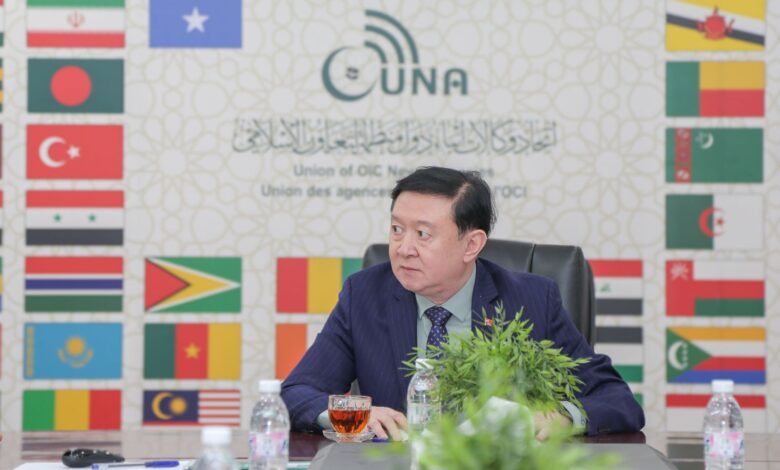 واستعرض المدير العام للاتحاد أمام السفير الصيني موجزاً حول أبرز أنشطة “يونا” وبرامجه وخططه المستقبلية، مشيراً إلى الدور المحوري الذي يضطلع به الاتحاد كمنصة إعلامية تخدم الدول الأعضاء وتعزز العمل الإعلامي الإسلامي المشترك على المستويين الإقليمي والدولي.