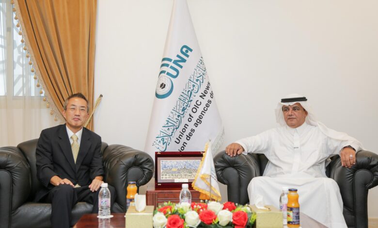 جدة (يونا) – استقبل المدير العام لاتحاد وكالات أنباء دول منظمة التعاون الإسلامي (يونا)، الأستاذ محمد بن عبدربه اليامي، اليوم الثلاثاء (19 أغسطس 2025) في مقر الاتحاد سعادة القنصل العام لدولة اليابان بجدة المندوب لدى منظمة التعاون الإسلامي السيد دائيسوكي ياماموتو.