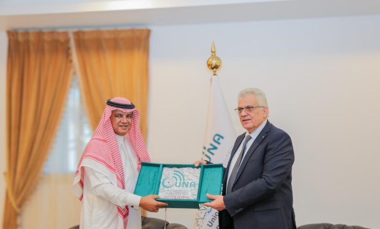 جدة (يونا)- زار سفير دولة فلسطين لدى المملكة العربية السعودية المهندس مازن محمد غنيم اليوم الخميس 23 أكتوبر 2025، مقر اتحاد وكالات أنباء دول منظمة التعاون الإسلامي “يونا” في مدينة جدة، حيث كان في استقباله المدير العام الأستاذ محمد بن عبدربه اليامي.